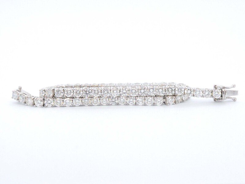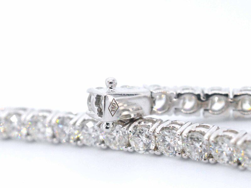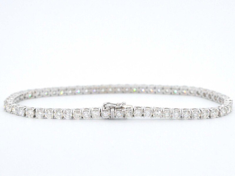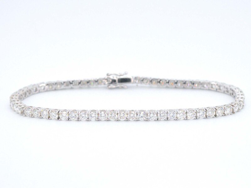 Product: Witgouden armband vol met briljant geslepen diamanten 6.00 carat Specificaties: Diamant: Natuurlijk Aantal: 59 stuks Slijpvorm: Briljant geslepen Gewicht (carat): 6.00 carat Kleur: H Zuiverheid: VS Slijpkwaliteit: Zeer mooi Juweel: Armband Gewicht: 10.5 gram Afmetingen/lengte: 18 cm Materiaal: 18K goud (750) Conditie: Nieuw Verpakking: Luxe sieradendoos Toelichting: De kwaliteit is overgenomen van het rapport behorend bij item. De waardebepaling is een beoordeling van een gecertificeerde diamantair, gebaseerd op consumentenprijzen. Consumentenprijs: € 28.000,-