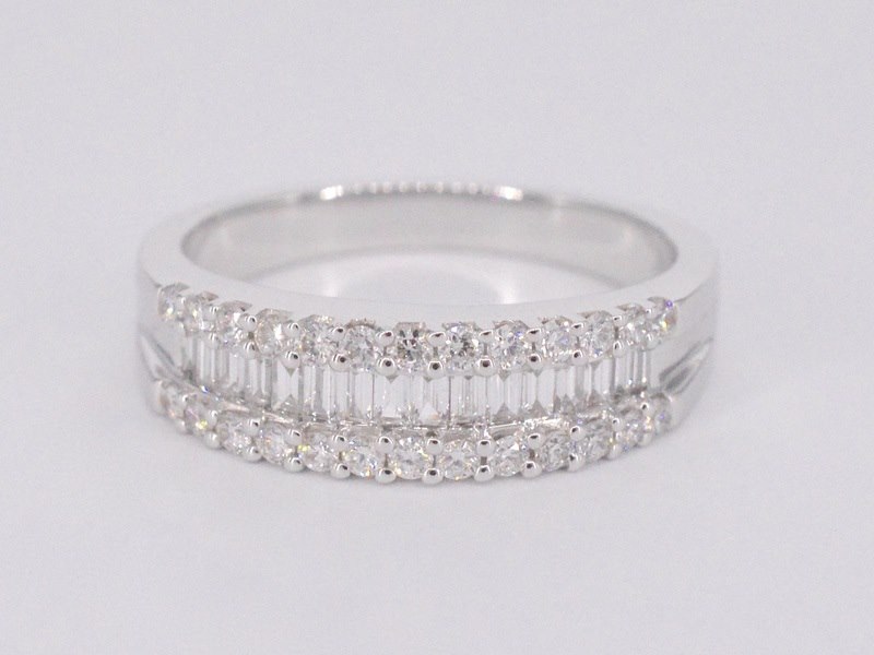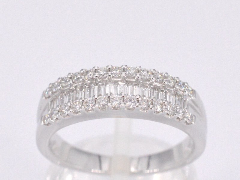 Product: Witgouden ring met briljant en baguettes Specificaties: Aantal: 42 stuks Slijpvorm: Briljant en baguette geslepen Gewicht (carat): 0.75 carat Kleur: F-G Zuiverheid: VS Slijpkwaliteit: Zeer mooi Juweel: Ring Gewicht: 4.2 gram Ringmaat (op maat gemaakt*): 53 (17 mm) Materiaal: 18K goud (750) Conditie: Nieuw Verpakking: Luxe sieradendoos Toelichting: De kwaliteit is overgenomen van het rapport behorend bij item. De waardebepaling is een beoordeling van een gecertificeerde diamantair, gebaseerd op consumentenprijzen. Consumentenprijs: € 6.370,- *Ringen kunnen als het mogelijk is op maat gemaakt worden.