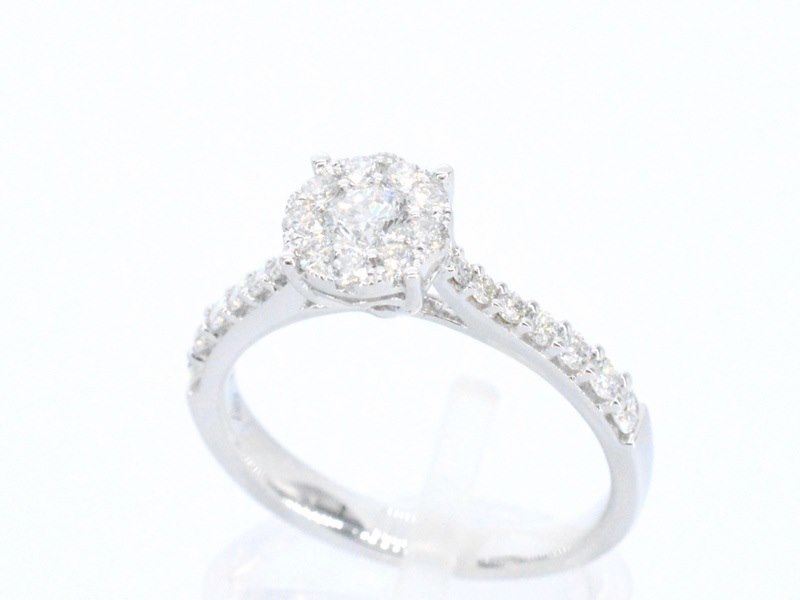 Product: Witgouden entourage ring met briljant geslepen diamanten Specificaties: Diamant: Natuurlijk Slijpvorm: Briljant geslepen Gewicht (carat): 0.75 carat Kleur: F-G Zuiverheid: VS Slijpkwaliteit: Zeer mooi Juweel: Ring Gewicht: 3 gram Ringmaat (op maat gemaakt*): 53 (17 mm) Materiaal: 18K goud (750) Conditie: Nieuw Verpakking: Luxe sieradendoos Toelichting: De kwaliteit is overgenomen van het rapport behorend bij item. De waardebepaling is een beoordeling van een gecertificeerde diamantair, gebaseerd op consumentenprijzen. Consumentenprijs: € 5.985,- *Ringen kunnen als het mogelijk is op maat gemaakt worden.