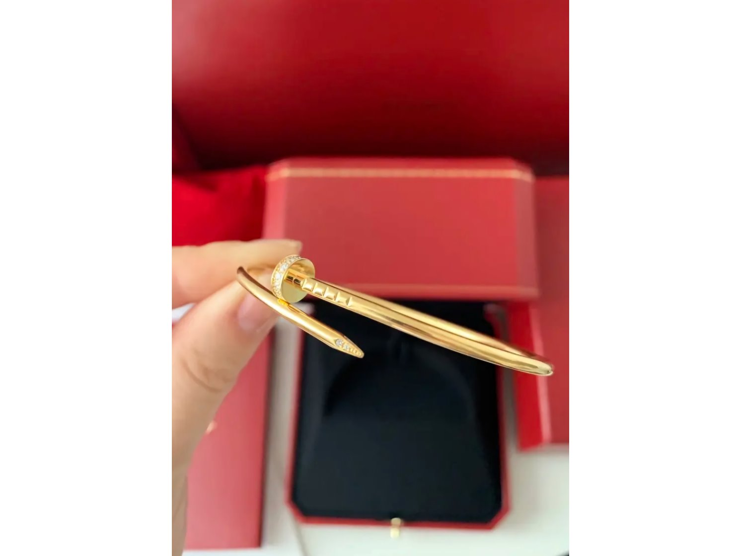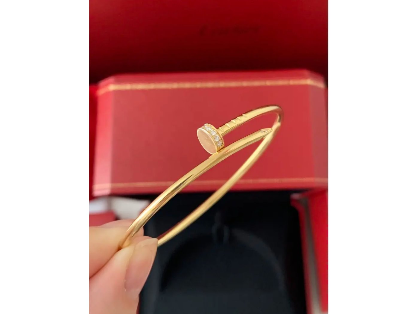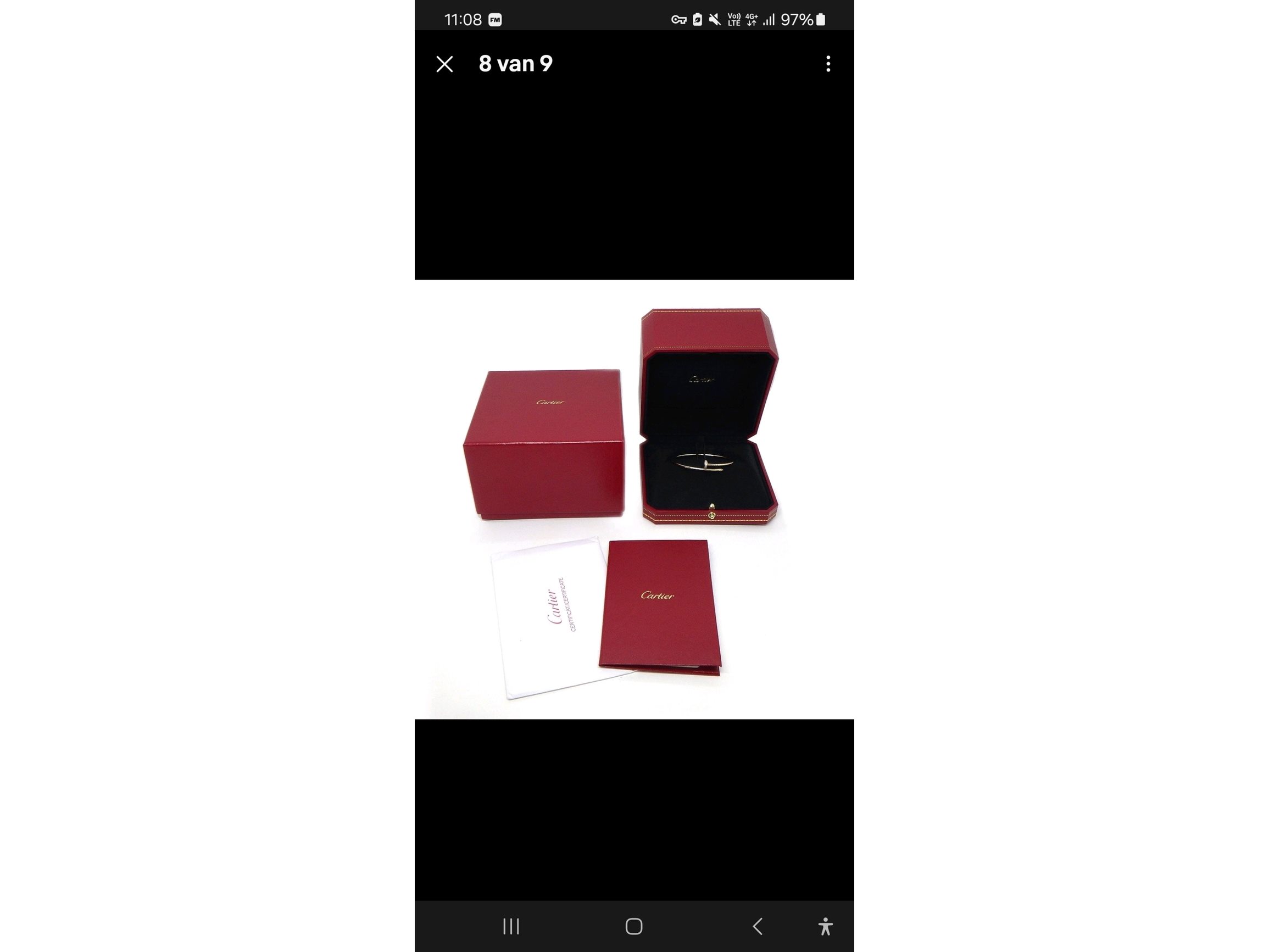 Merk: Cartier Product: Armband Materiaal: Goud/diamant Afmeting: 17 Conditie: Gebruikt Specificaties: Cartier Juste un Clou Bracelet – 18K Geelgoud – Maat 17 Cartier Juste un Clou armband, vervaardigd uit 18 karaat geelgoud (750/1000). Iconisch ontwerp in de vorm van een gebogen spijker, kenmerkend voor de Juste un Clou-collectie. Details Materiaal: 18k geelgoud/ diamant Maat: 17 Model: Juste un Clou Bracelet Conditie: Zo goed als nieuw, slechts enkele keren gedragen Inclusief: Originele Cartier box en origineel certificaat