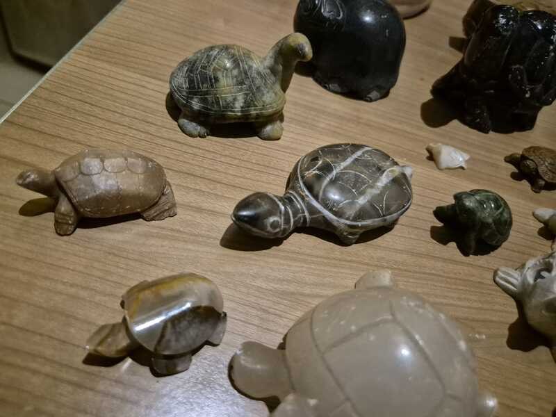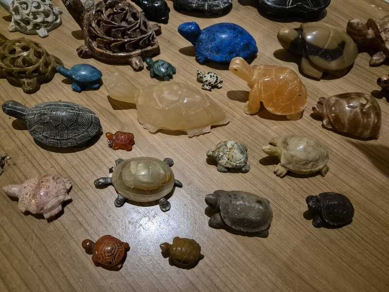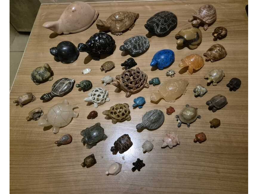 Product: Schildpadden verzameling van steen Conditie: Goed Specificaties: Een verzameling van stenen beelden van schildpadden.