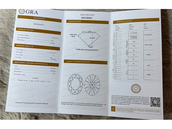 Product: 3.00 karaat ovaal vorm briljant Moissaniet Conditie: Nieuw Specificaties: Moissaniet Slijpvorm: Ovaal geslepen Gewicht: 3.00 karaat Kleur: D Zuiverheid: VVS1 Slijpkwaliteit: Excellent Certificaat: GRA Opmerking: Het gemeten gewicht volgens diamant maten Verpakking: Edelsteendoosje De kwaliteit is overgenomen van het certificaat behorend bij het item.