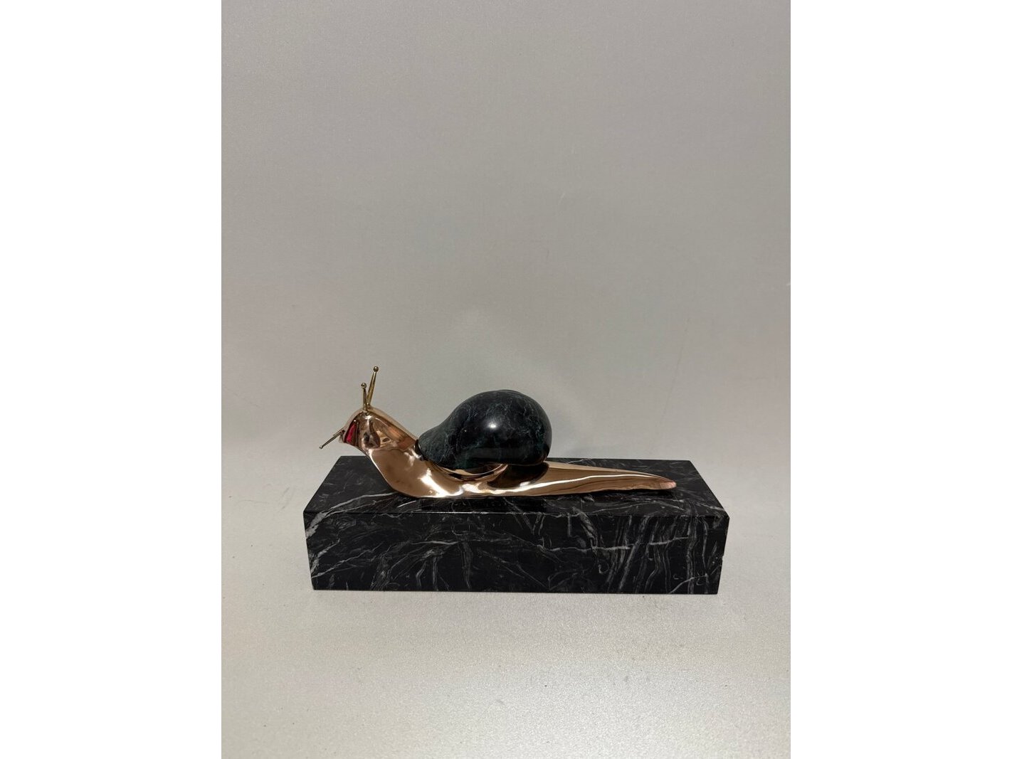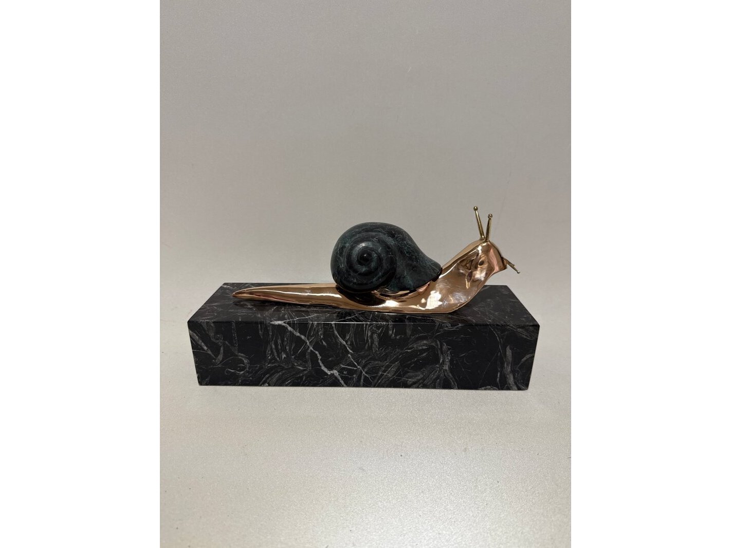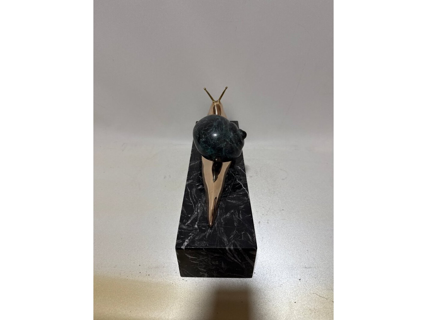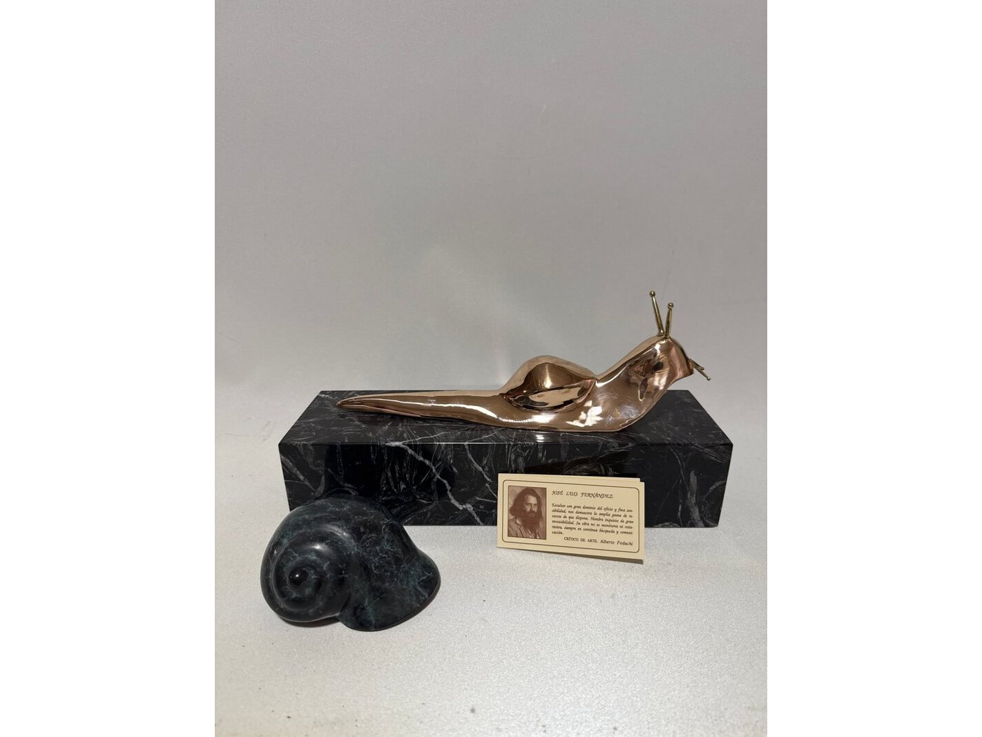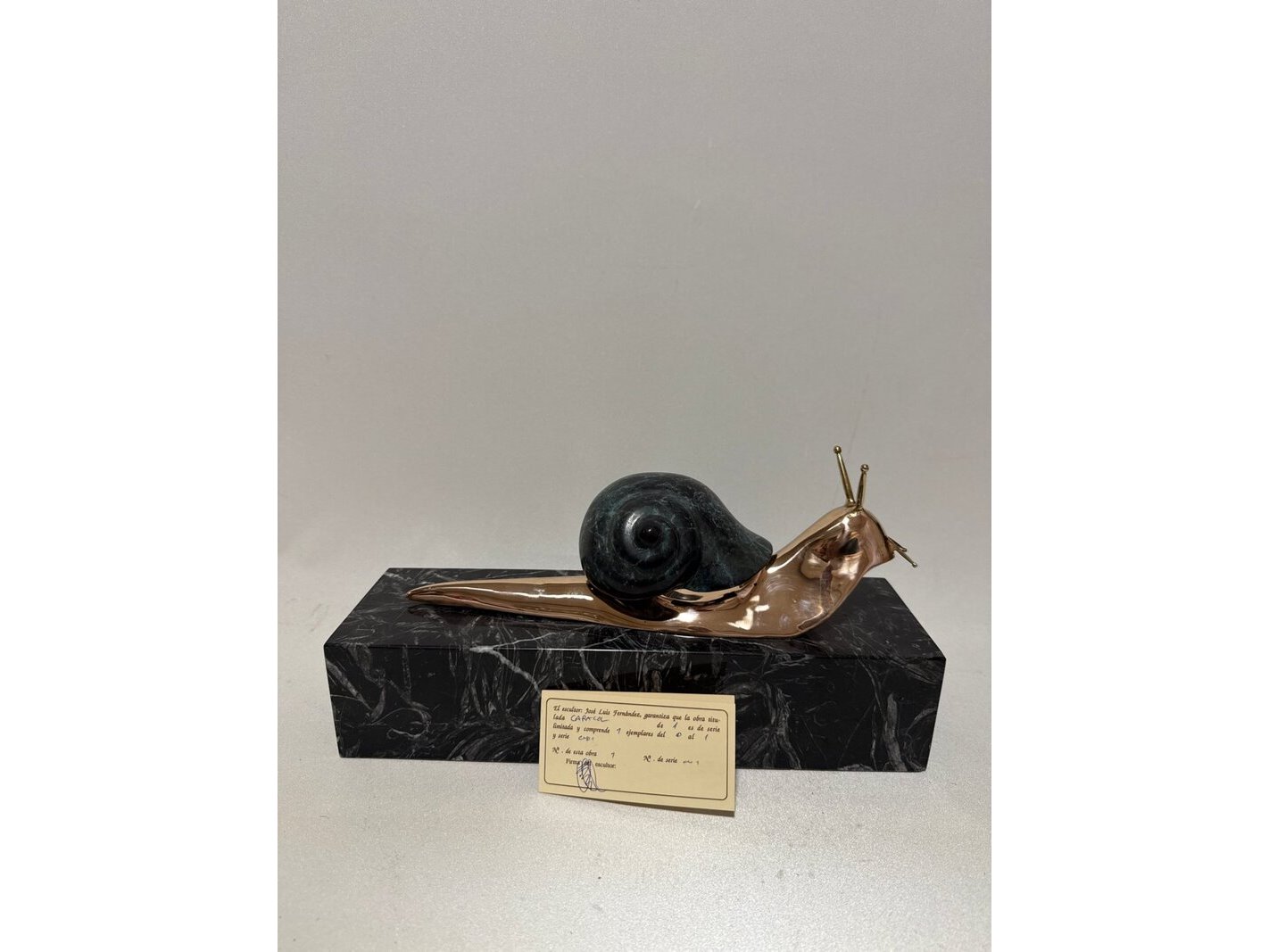 Product: José Luis Fernádez - l'escargo Conditie: Gebruikt Specificaties: José Luis Fernádez - l'escargo, Geheel op marmeren voet. In uitstekende conditie. H 37 cm x B 20 cm x D 11 cm. Totaal gewicht: 14 kg! Prachtig werk van de beeldhouwer-schilder Jose Luis Fernández Martinez (1947-2021). Gemaakt met was-techniek, verzonken in brons, spiegel gepolijst op een zwarte marmeren sokkel. Stuk bestaande uit twee delen, gepolijst goudbrons en gepatineerd groen brons, op een zwarte marmeren sokkel. Werk rechtstreeks afkomstig van de erfgenaam van de auteur. Gesigneerd en gecertificeerd. Sculptuur in unieke oplage van 1 nummer 1 in een serie van 1 Geleverd gesigneerd en met een gesigneerd echtheidscertificaat. In perfecte staat. Ideaal voor verzamelaars van klassieke kunst. Een van de werken van José Luis Fernández uit zijn periode. JOSE LUIS FERNANDEZ Beeldhouwer, met een grote beheersing van het vakmanschap en een fijne gevoeligheid, toont ons de brede waaier aan mogelijkheden die beschikbaar zijn voor een rusteloze en zeer veelzijdige kunstenaar, wiens werk noch monotoon noch repetitief is, altijd in voortdurende zoektocht en communicatie. https://buysculpture.es/jose-luis-fernandez/
