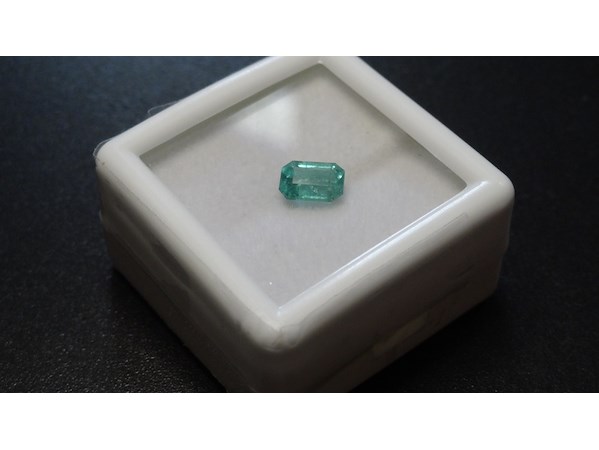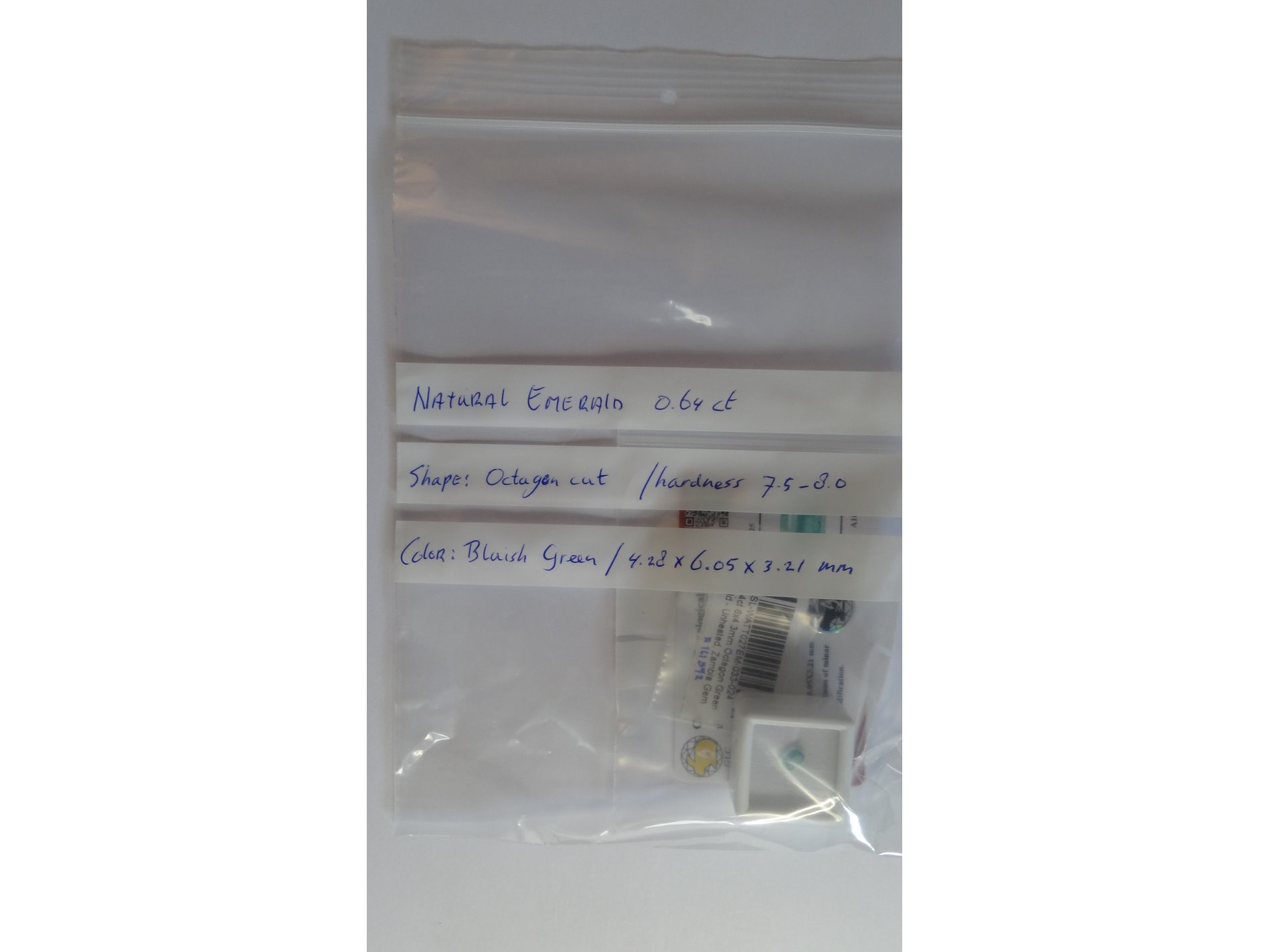 Product: Edelsteen | Natural Emerald 0.64ct Conditie: Nieuw Specificaties: Natural Emerald Weight : 0.64 ct Shape : Octagon cut Color : Bluish green. Hardness : 7.5/8.0 Clarity : SI1 Treatment : None Dimensions : 4.28 x 6.05x 3.21 mm. Compleet met GLC rapport. Wordt geleverd in een edelsteendoosje
