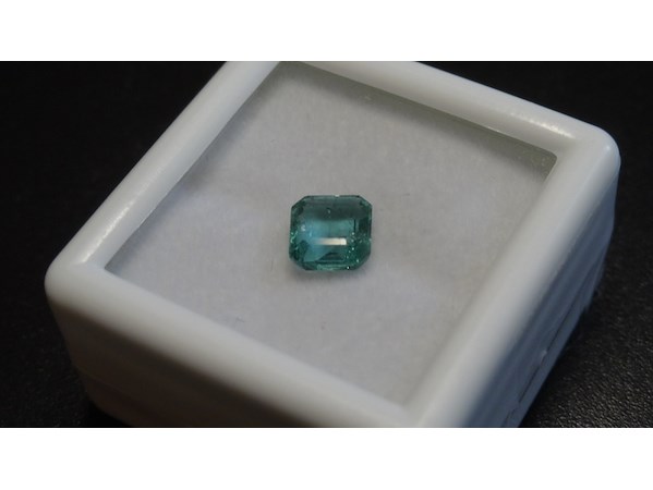 Product: Edelsteen | Natural Emerald 0.85ct Conditie: Nieuw Specificaties: Natural Emerald. Weight : 0.85 ct Shape : Octagon cut. Color : Bluish / green Hardness : 7.5/8.0 Clarity : SI1 Treatment : oil Dimensions : 5.50 x 5.75 x 2.96 mm. Compleet met GLC rapport. Wordt geleverd in een edelsteendoosje.