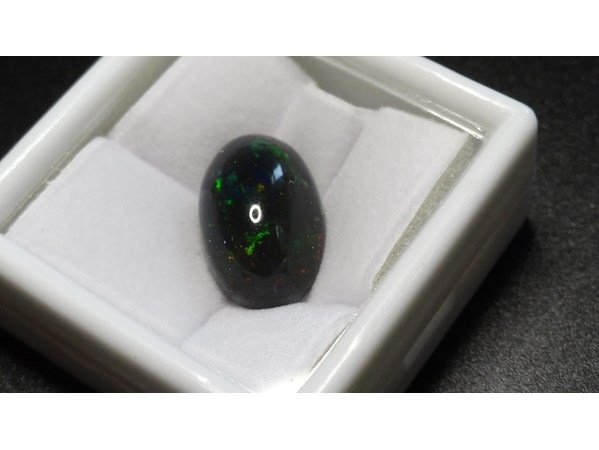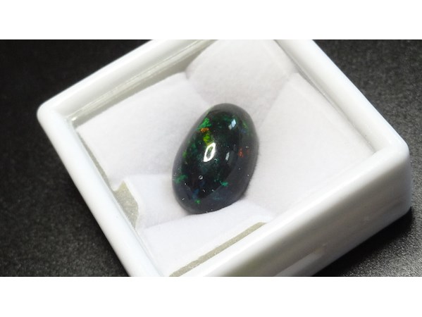 Product: Edelsteen | Natural Black Opal 11.50ct Conditie: Nieuw Specificaties: Natural Black Opal Weight : 11.50 ct Shape : Oval Cabochon. Color : Black with play of color. Hardness : 5.5/6.0 Dimensions : 19.50 x 12.52 x 10.12 mm. Compleet met AIG rapport. Wordt geleverd in een edelsteendoosje.