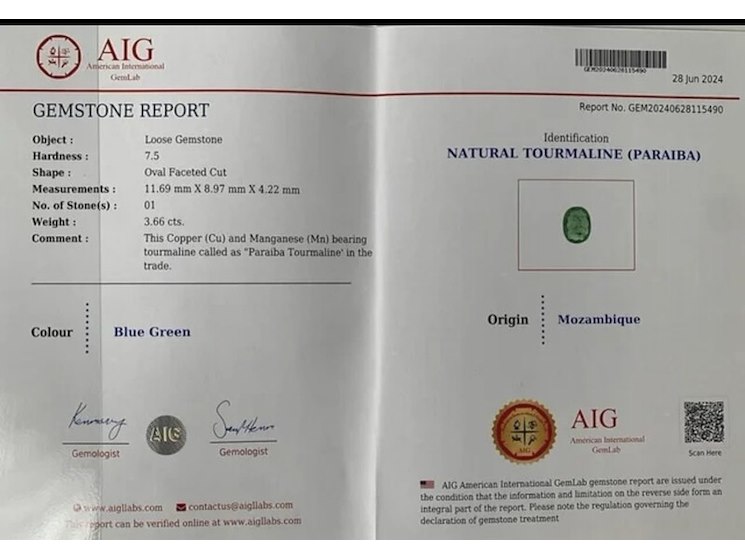 Paraiba-turmalin – 3.66 karat seltener natürlicher paraiba-turmalin (zertifiziert), groen