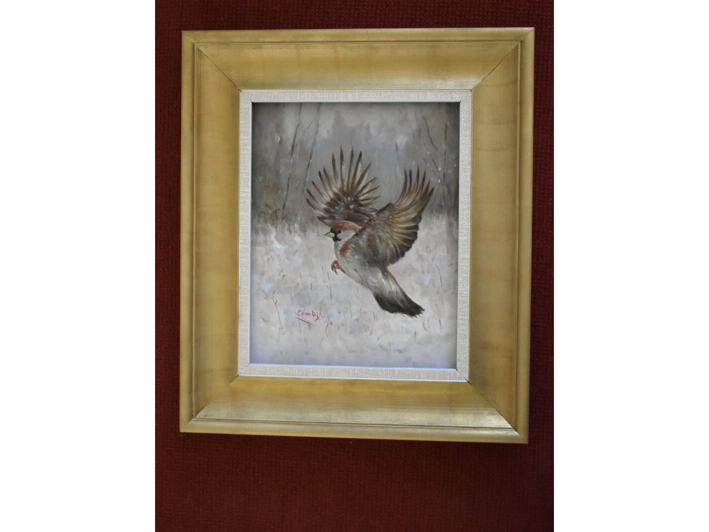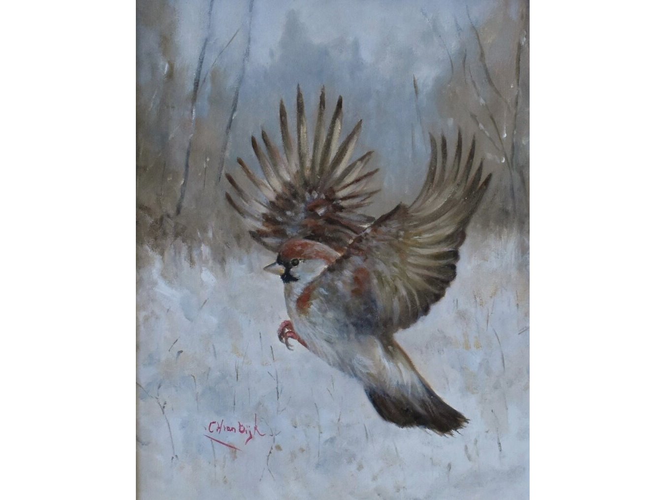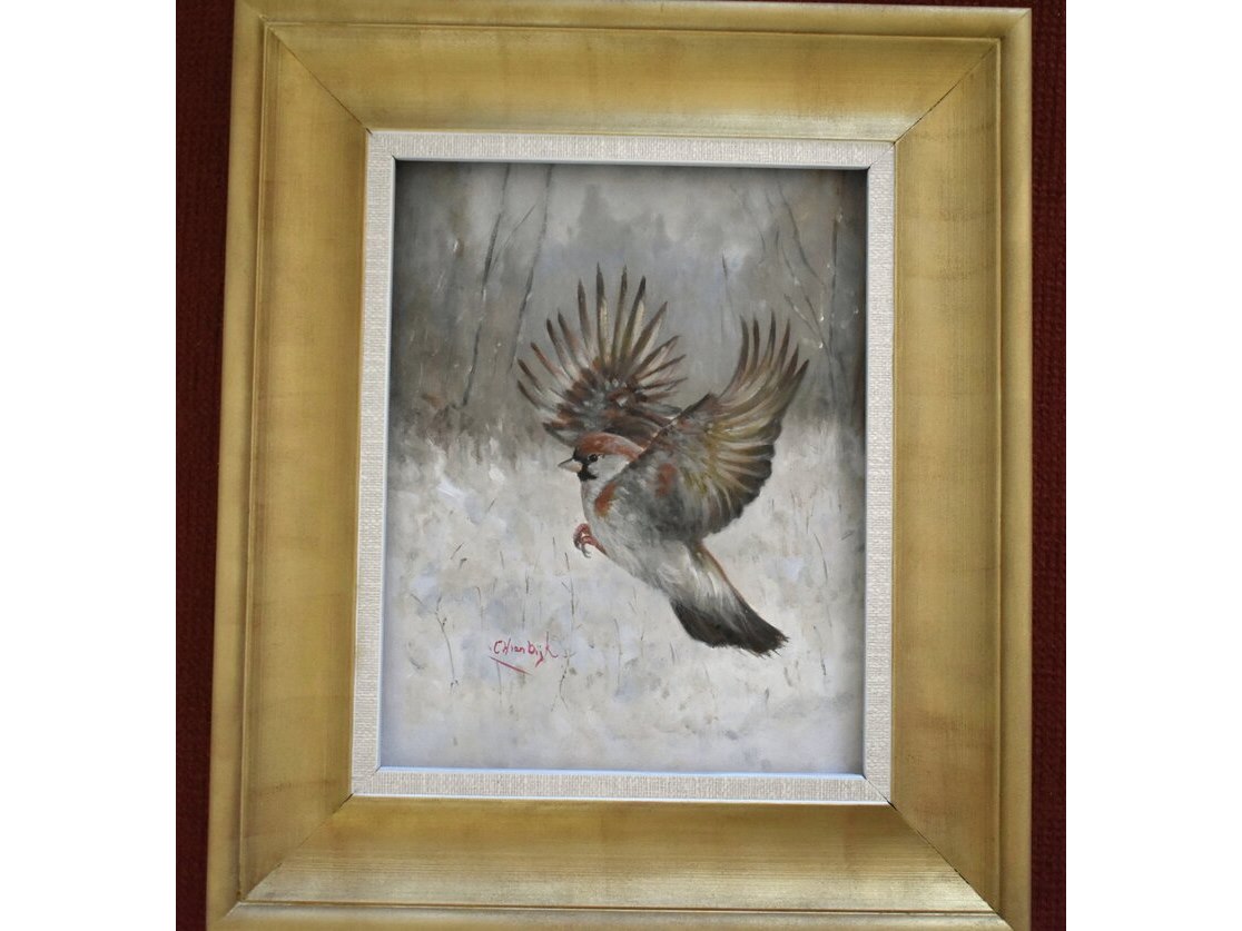 Product: Lodewijk Busing (aka C.H.van Dijk) - "Mus in winterlandschap" Conditie: Gebruikt Specificaties: Schilderij van Lodewijk Busing, Maastricht 1965, "Mus in winterlandschap" Gesigneerd onder pseudoniem: C H van Dijk Met certificaat. Lodewijk Busing geboren te Maastricht(1965) maar woont alweer het grotendeels van zijn leven in de bollenstreek , Hij haalt zijn inspiratie uit zijn omgeving tijdens zijn wandelingen in zijn bosrijke omgeving , Kleuren en de intensiteit van het licht toch met een licht warme tint probeert hij in zijn werken op te zetten . Zijn meest geliefde thema is toch het schilderen van de prachtige vogels uit het mooie Hollandse landschap Hij signeert zijn werken meestal met zijn bekendere pseudoniem CH van Dijk zo ook dit schilderij is gesigneerd Het schilderij heeft een mooie licht goudkleurige lijst Het werk exclusief de lijst meet op paneel 24x30 cm Schilderij op achterzijde paneel voorzien van een certificaat ondertekend en gesigneerd door de schilder.