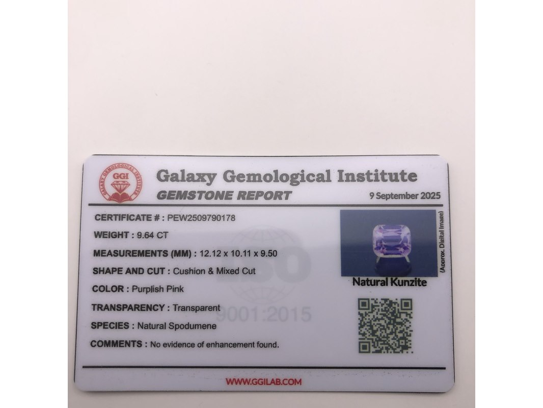 Product: Roze Kunziet Materiaal: Kunziet Afmeting: 12,12x10,11x9,50 Specificaties: Edelsteen: Roze Kunziet Aantal: 1x Vorm: Gemengd kussenslijpsel Gewicht (karaat): 9,64 Afmetingen (mm): 12,12x10,11x9,50 Kleur: Lichtroze. Beschrijving: Geen verhitting of behandeling. Volledig natuurlijke kleur. Zeer mooi in het echt.