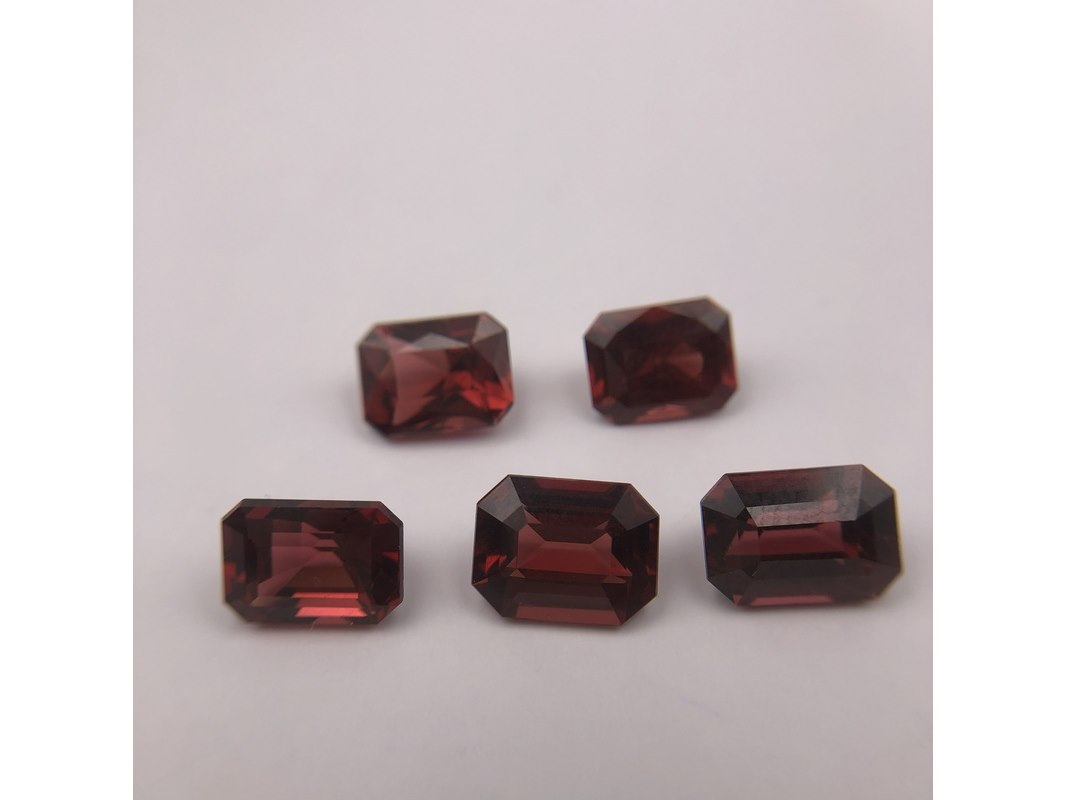 Product: Rhodoliet Granaat Kleur: Rood Materiaal: Granaat Afmeting: 7,9 tot 8,8 mm lang Conditie: Gebruikt Specificaties: Edelsteen: Rhodoliet Granaat Aantal: 5x Slijpvorm: Smaragd geslepen Gewicht (karaat): totaalgewicht 11,3, gemiddeld gewicht 2 karaat Afmeting(en) (mm): 7,9 tot 8,8 mm lang Kleur: Dieprood. Beschrijving: De mooiste gekleurde Rhodoliet granaten.