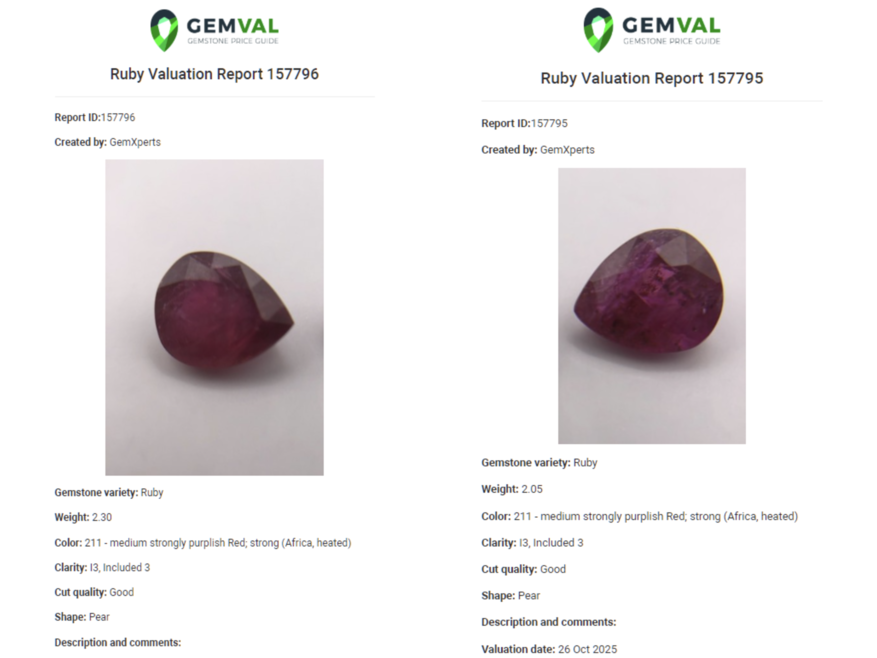 2x robijn, edelsteen, rood