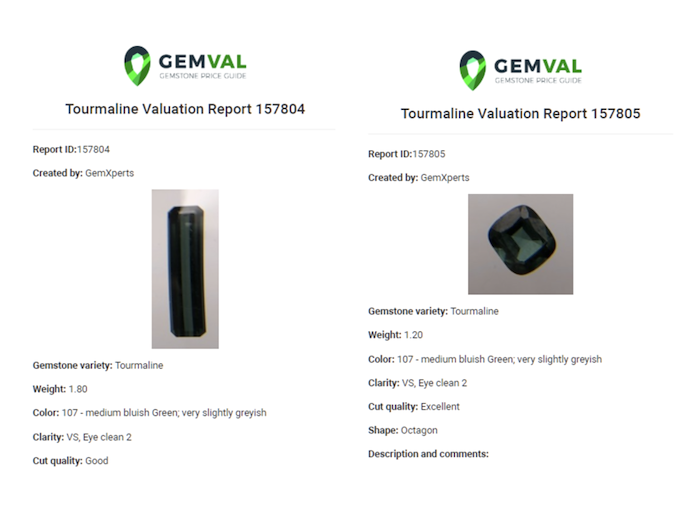 4x indicoliet toermalijn, blauwgroen of groenblauw
