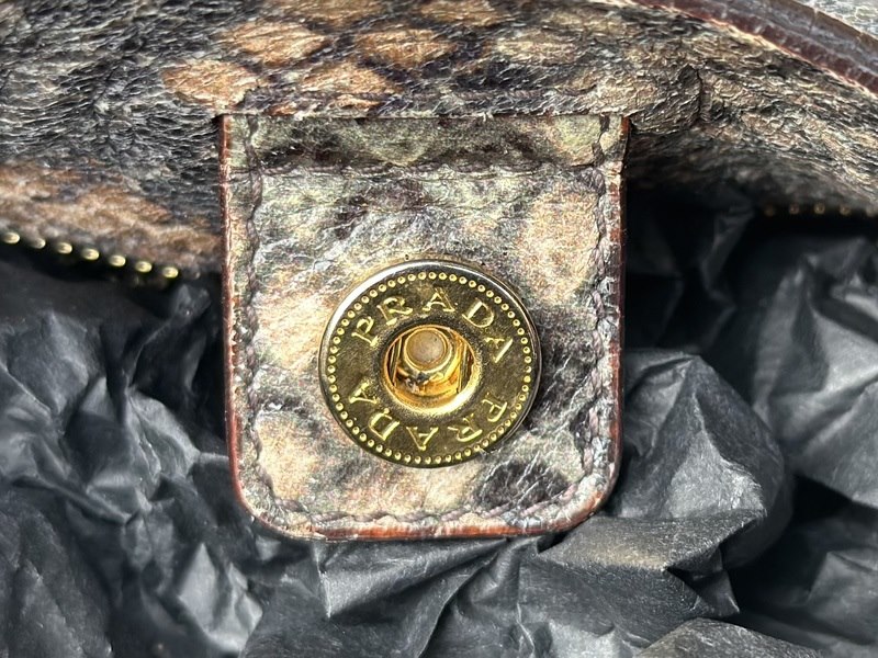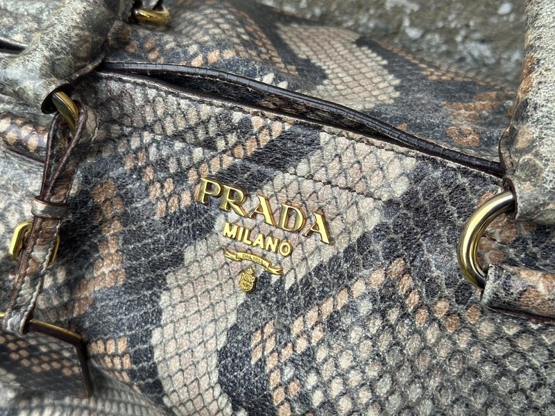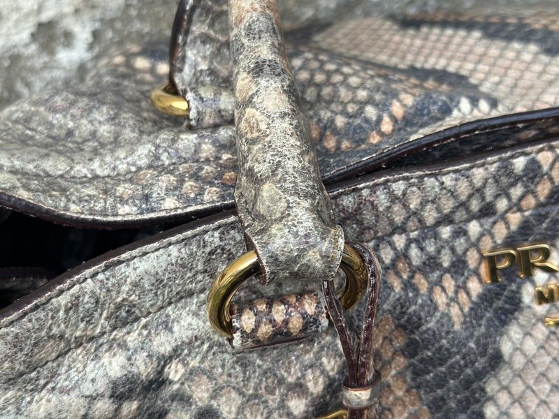 Merk: Prada Product: Tas Afmeting: Groot Conditie: Gebruikt Specificaties: Prada tas met Serpent/Python look. Tas is in goede conditie, de binnenkant vertoont duidelijke gebruik sporen. Grote maat.