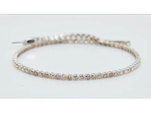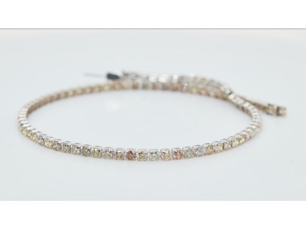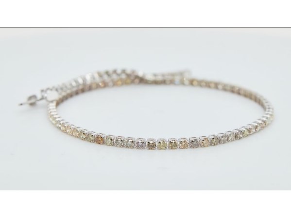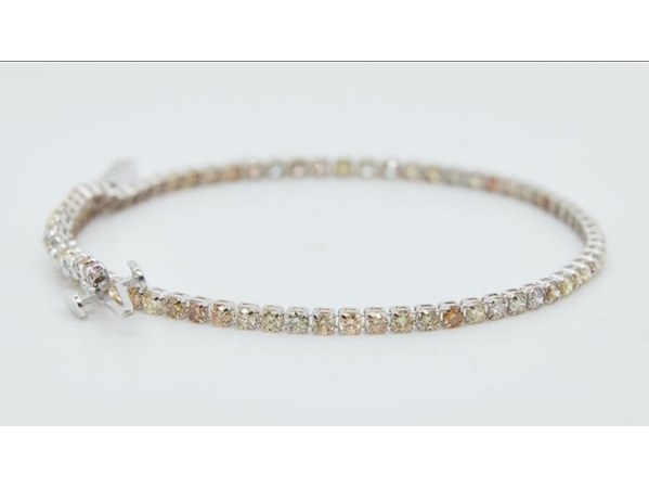 Product: Natuurlijke Diamanten – Exclusieve 18K Witgouden Armband – 1.97ct Materiaal: 18 karaat witgoud (750 gestempeld) Afmeting: Lengte ca. 18–19 cm BouwJaar: 2025 Conditie: Nieuw Specificaties: Adembenemende 18 karaat witgouden tennisarmband bezet met natuurlijke ronde briljantgeslepen diamanten, met een totaalgewicht van 1.97 karaat. De diamanten variëren subtiel in kleur van Fancy Light tot Fancy Deep in tinten bruin, oranje, geel, grijs en groen, wat een schitterend kleurenspel creëert. Kwaliteit: VS – I, slijping Brilliant Cut, gepolijst en gesymmetreerd van Fair tot Very Good. Rapport door GRA (Gemological Research Antwerp) – rapportnr. 1820006025. Een uitzonderlijk elegant en verfijnd juweel dat luxe, klasse en vakmanschap uitstraalt – ideaal voor verzamelaars of als waardevolle investering.