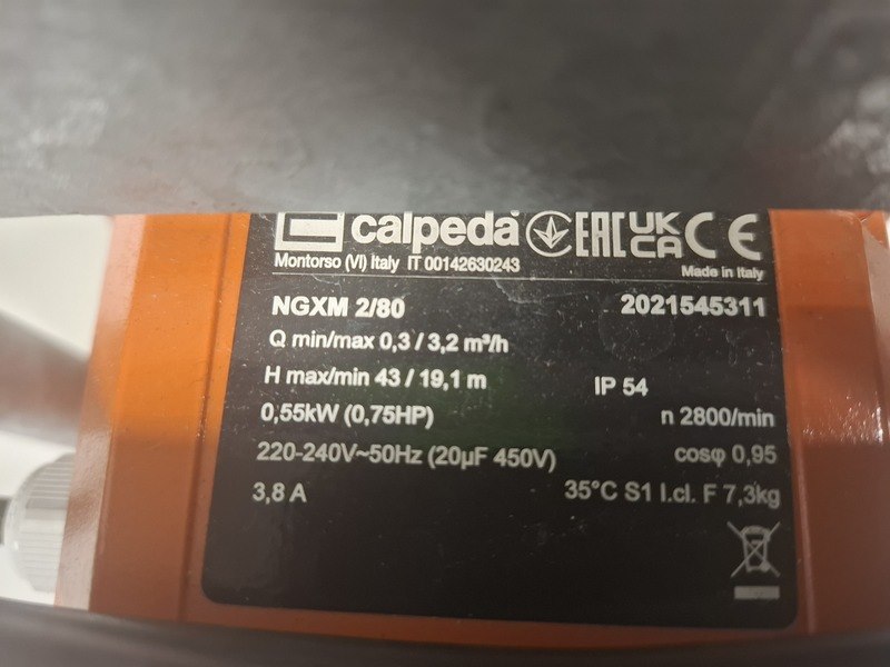 Waterbedpomp 230v incl. aanzuigslang~ calpeda, ngxm 2, bouwjaar 2021