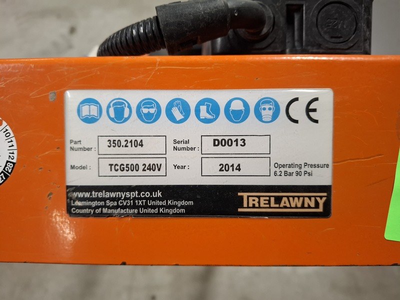 Merk: Trelawny Product: Betonschuurmachine 230V (2-discs) BouwJaar: 2014 Specificaties: Kavel is inclusief 2x schuurschijf / disc. Zie kavel 304, 305 en 306 voor meer schijven.