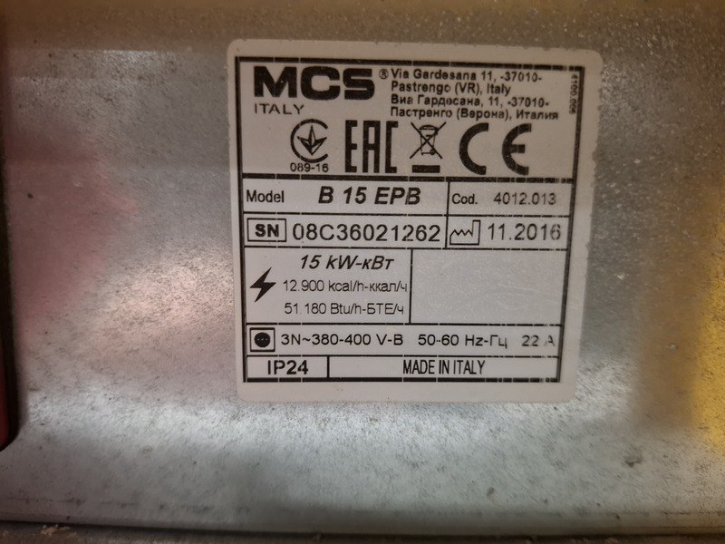 Merk: Master Product: Elektroheater 15kW 400V BouwJaar: 2016