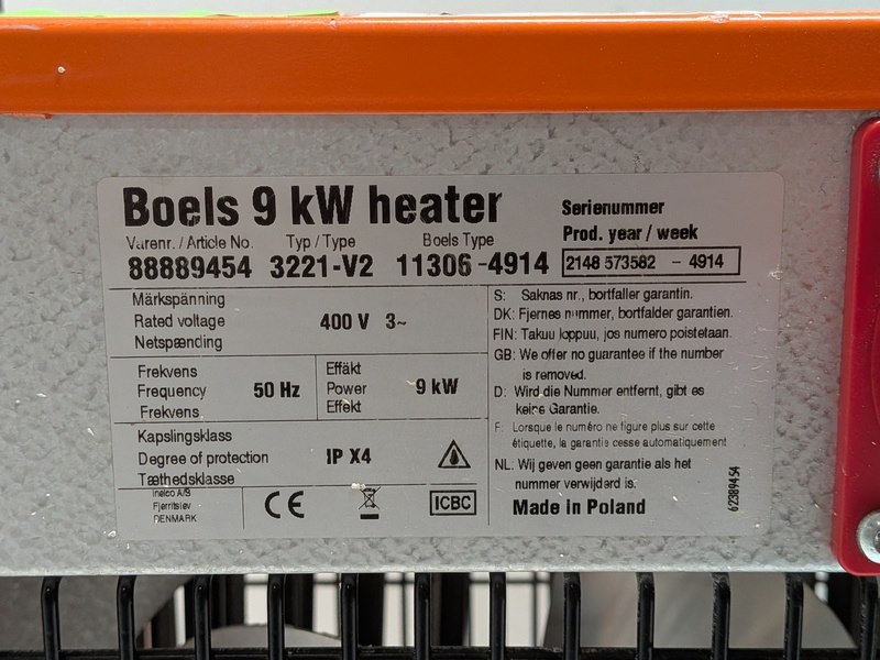 Elektroheater 9kw 400v inelco, 88849450 dania sh 9kw, bouwjaar 2021
