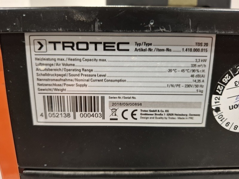 Merk: Trotec Product: 11305 - Elektroheater 3kW 230V BouwJaar: 2018