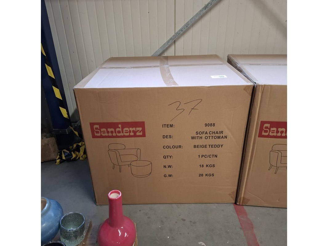 Product: Sofa chair beige met hocker teddy Materiaal: Teddy BouwJaar: 2025 Conditie: Nieuw