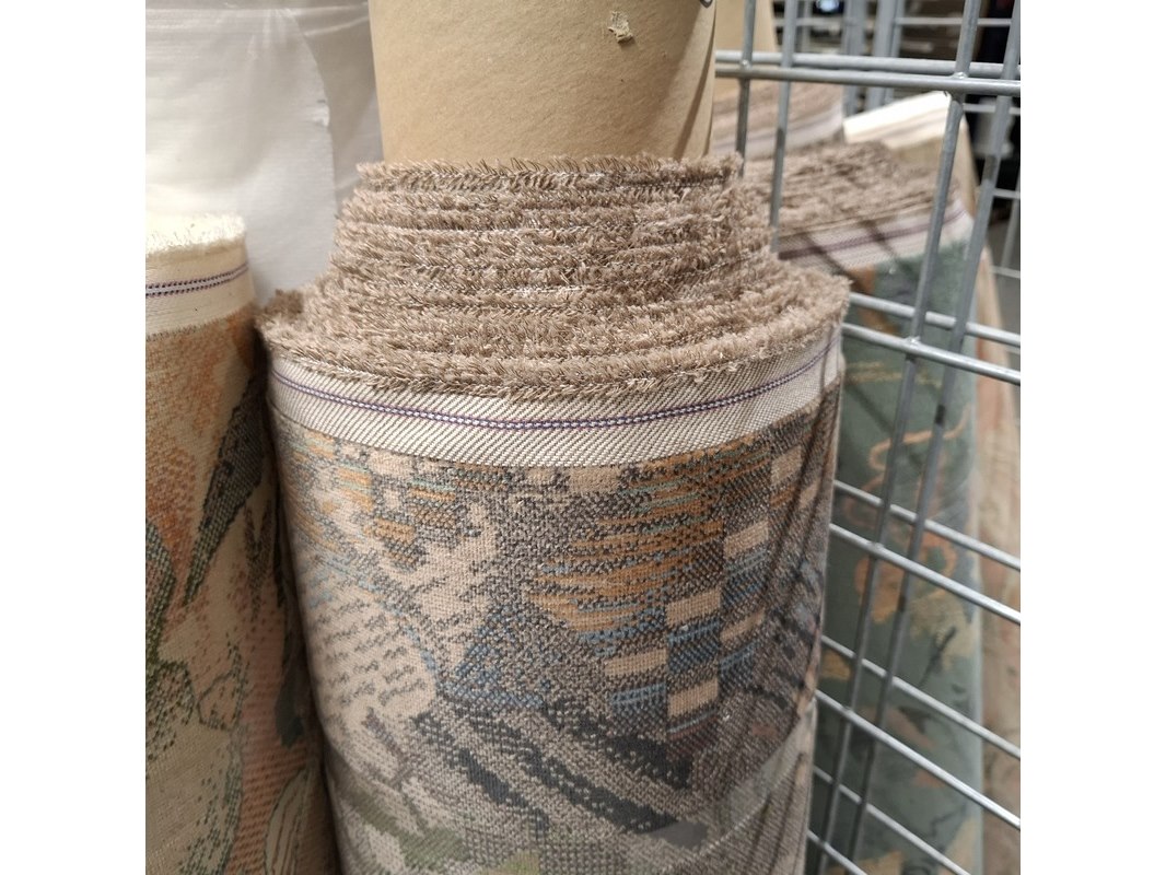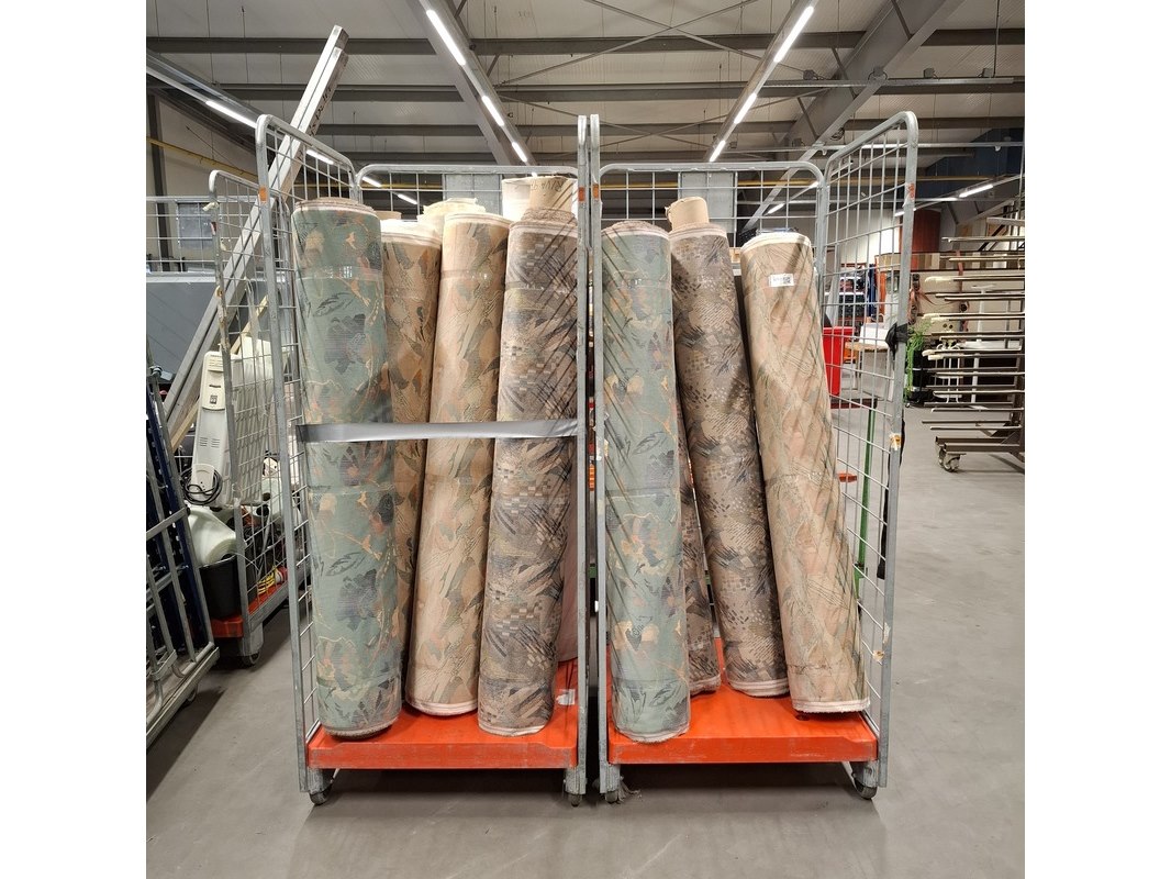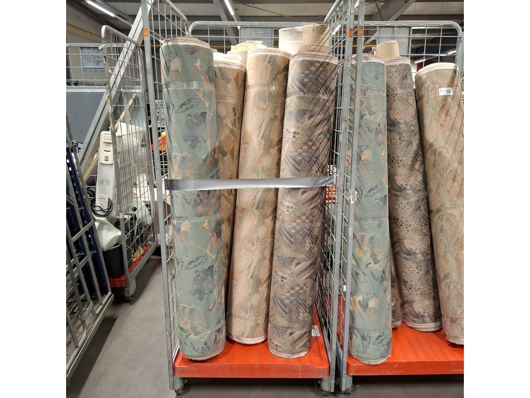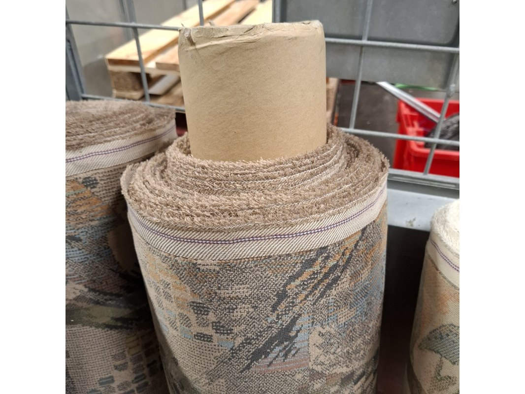 Product: Luxe meubelstof Afmeting: Breedte 140 cm Specificaties: Jacquard velours in 3 variaties. Totale hoeveelheid ca. 160 meter Inclusief 2 rollen onderstof Breedte 150cm Totaal ca. 300 meter