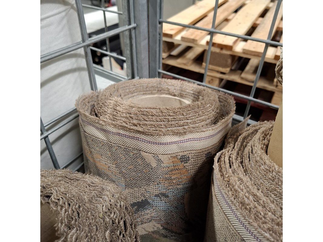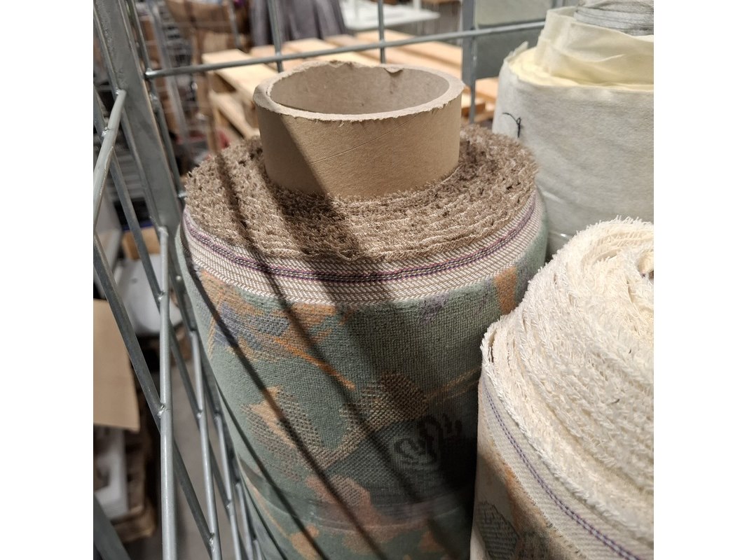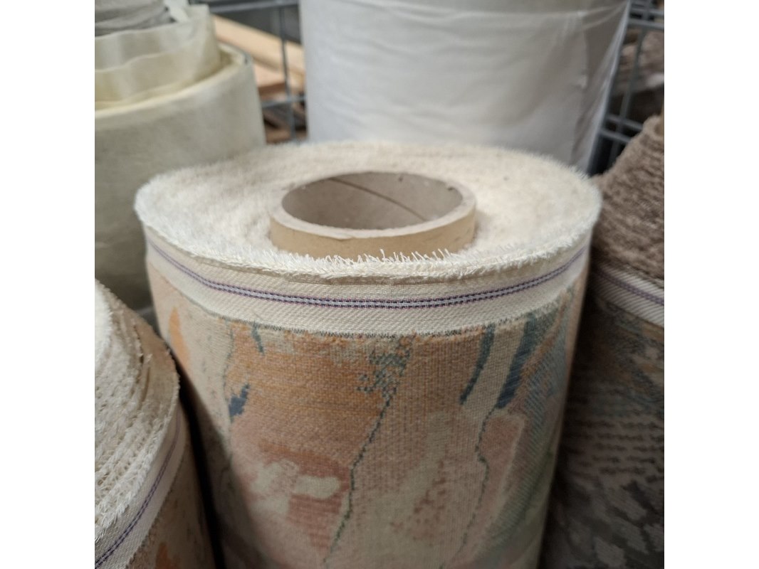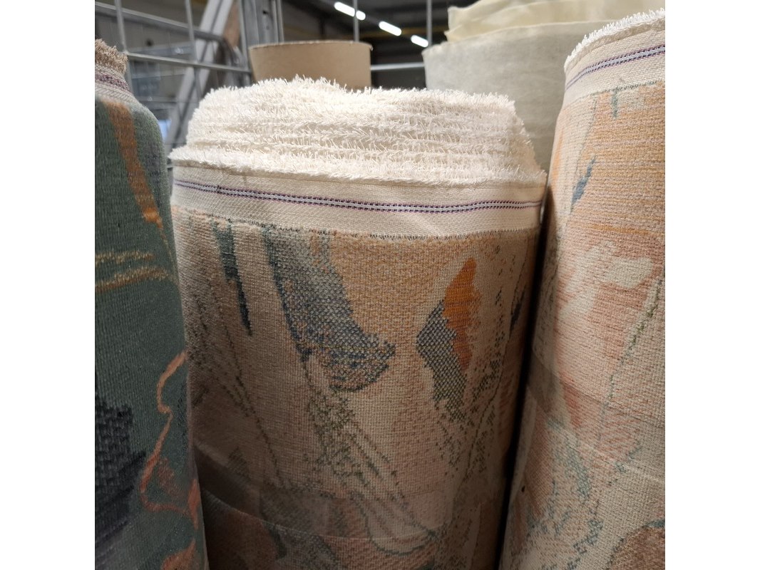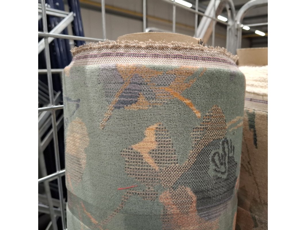 Product: Luxe meubelstof Afmeting: Breedte 140 cm Specificaties: Jacquard velours in 3 variaties. Totale hoeveelheid ca. 160 meter Inclusief 2 rollen onderstof Breedte 150cm Totaal ca. 300 meter