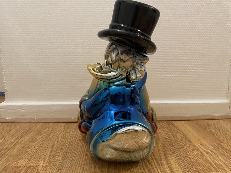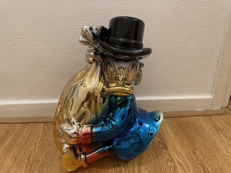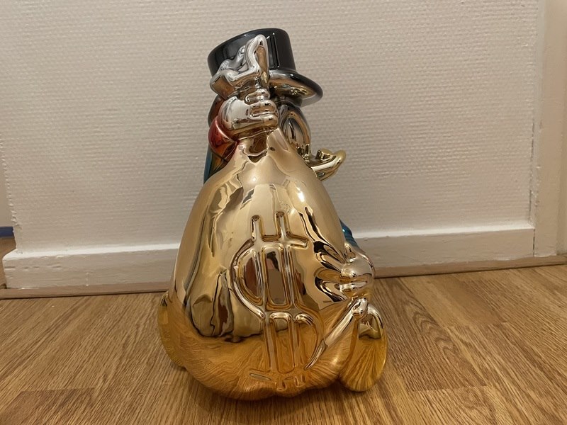 Product: Dagobert Duck Money Hugger beeld Materiaal: Gemalen steen gemengd met hars Afmeting: 30x30cm Conditie: Nieuw