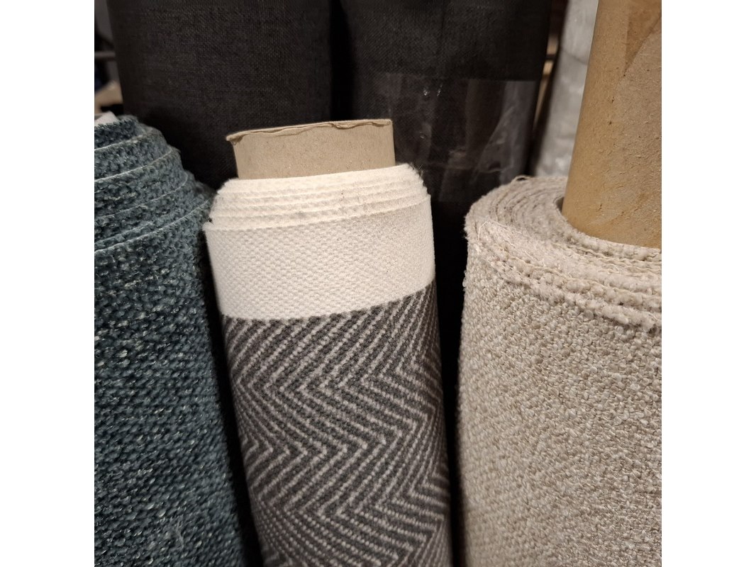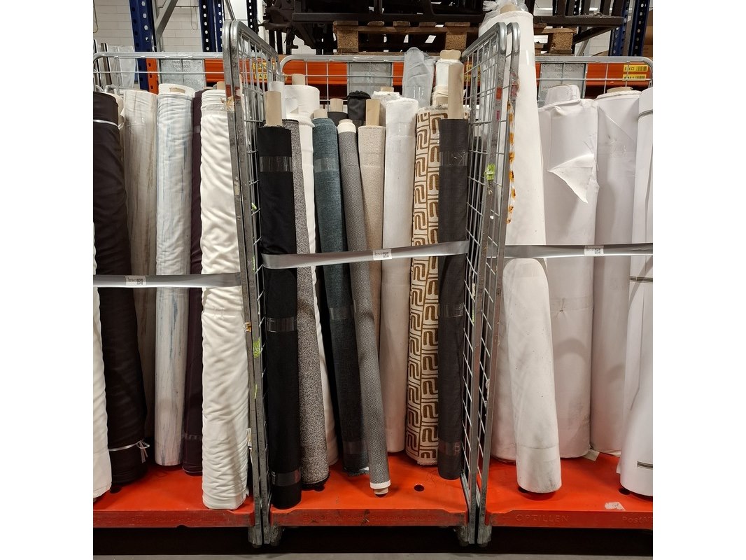 Product: Meubelstof assorti Afmeting: Breedte ca. 145cm Specificaties: Diverse soorten en kleuren Totale hoeveelheid ca. 165 meter