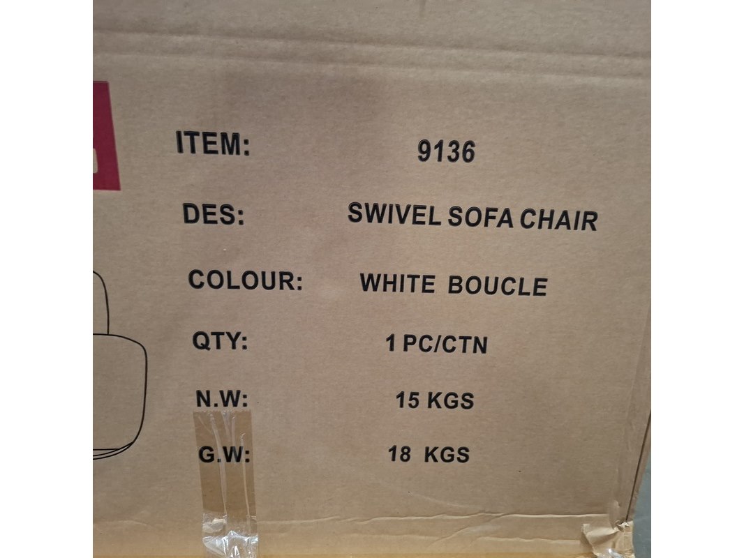 Product: Sofa chair wit boucle BouwJaar: 2025 Conditie: Nieuw Specificaties: 360 graden draaibaar
