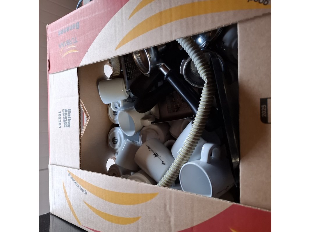 Merk: Astoria Product: Espresso machine met koffiemolen Kleur: Grijs / Chroom Materiaal: RVS & Plastic Afmeting: 71,5 cm x 53,5 cm x 51,5cm (lengte x breedte x hoogte) BouwJaar: 2017 Conditie: Gebruikt Specificaties: Voltage 240 V Power 3.900 W Boiler 10,5 / 2.3 lt / UK gal Width 715 mm Depth 535 mm Height 515 Net weight 55 Gross weight 70 Inclusief doos met kopjes, inclusief koffiemolen.
