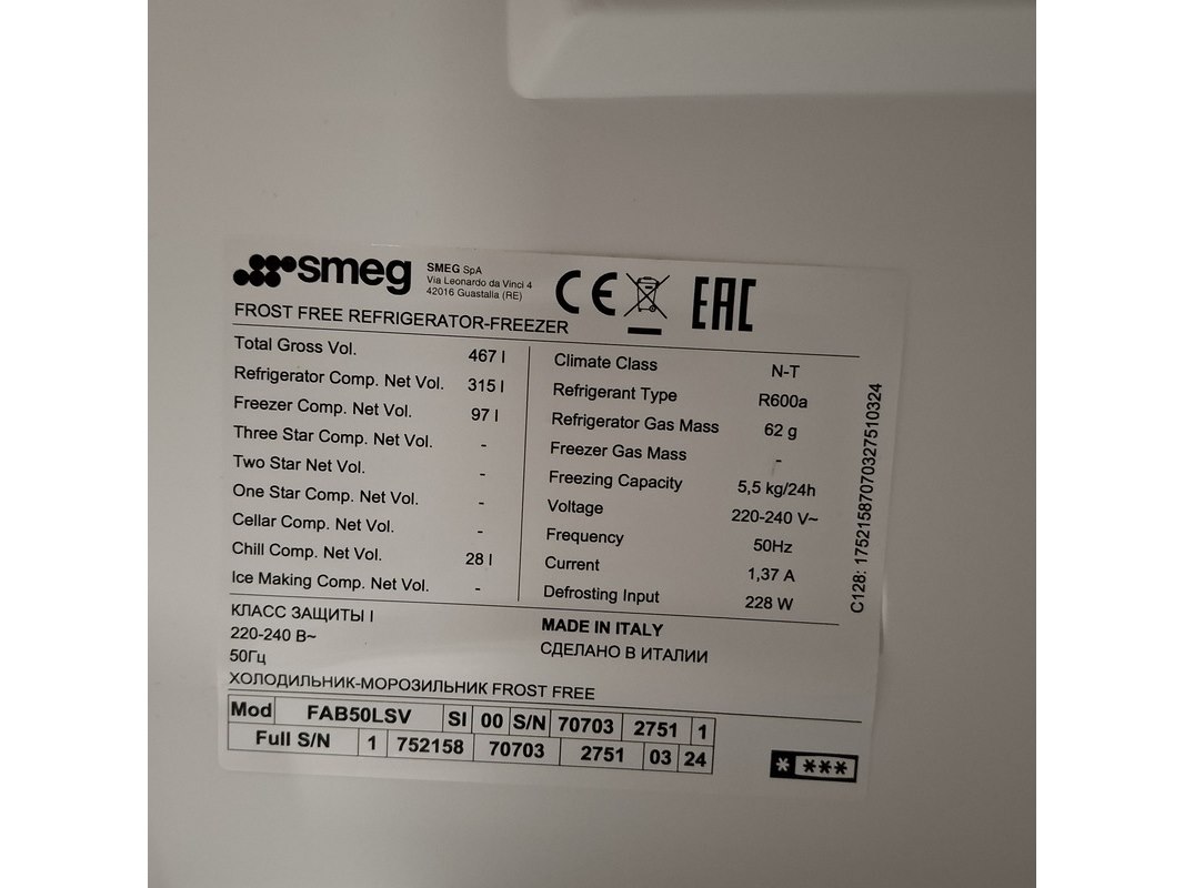 Merk: SMEG Product: Koelkast met vriesvak Kleur: Grijs / Chroom Afmeting: 190x80x75 Conditie: Gebruikt Specificaties: SMEG koelkast NO FROST met vriesvak Werkend getest!