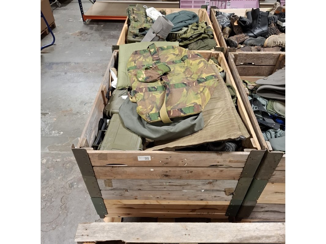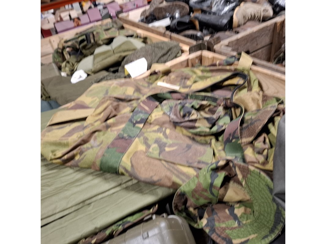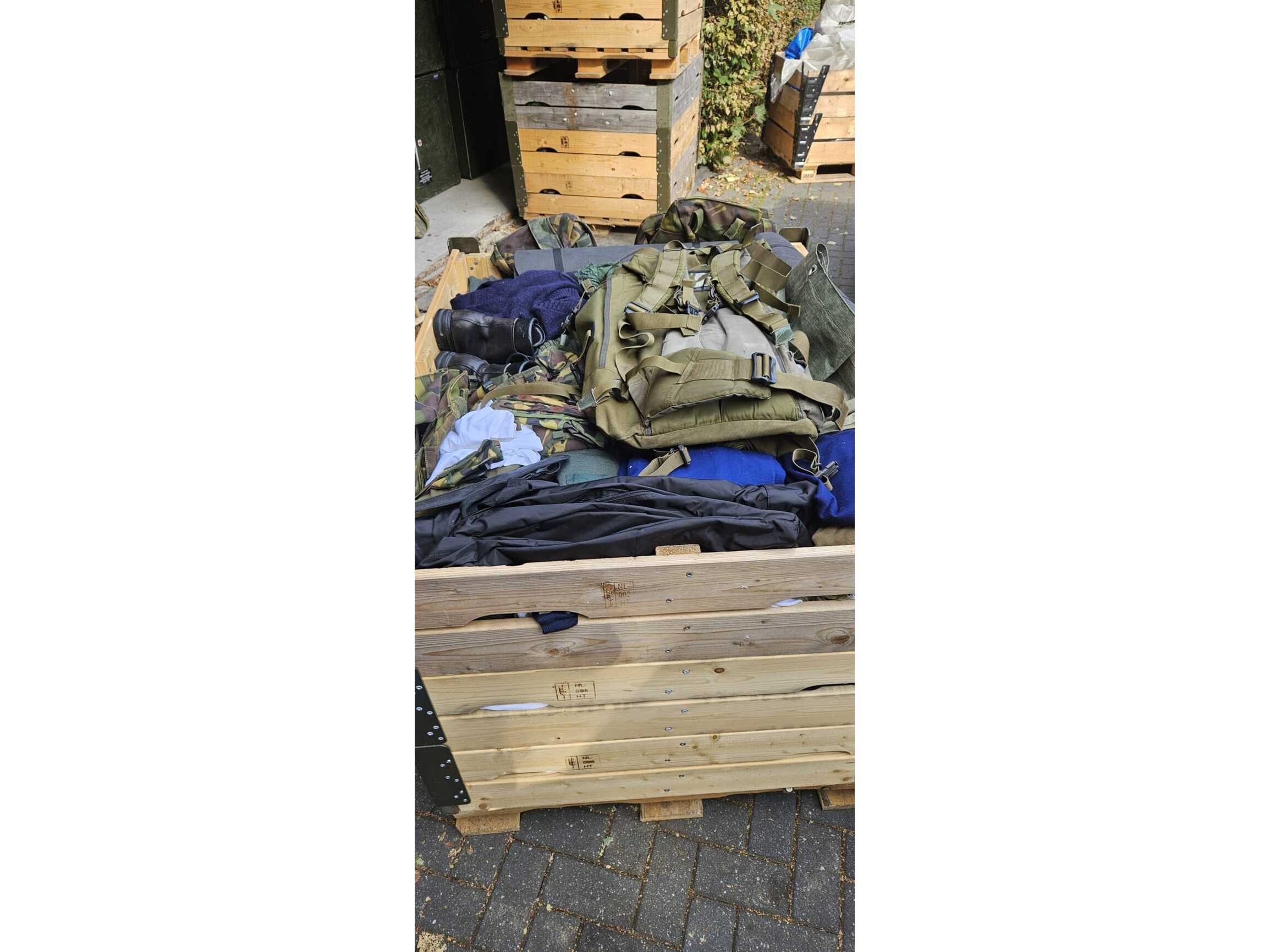 Merk: Woodland KPU KL Product: Persoonlijke uitrusting en kleding defensie Conditie: Gebruikt Specificaties: Bestaande uit 1 palletbox ongesorteerde artikelen Inclusief palletbox