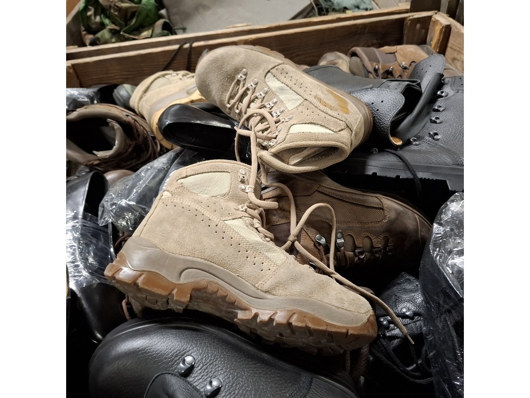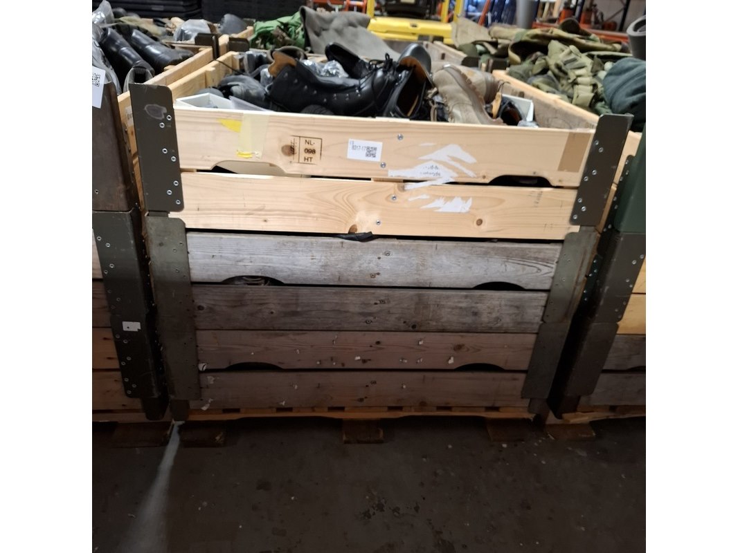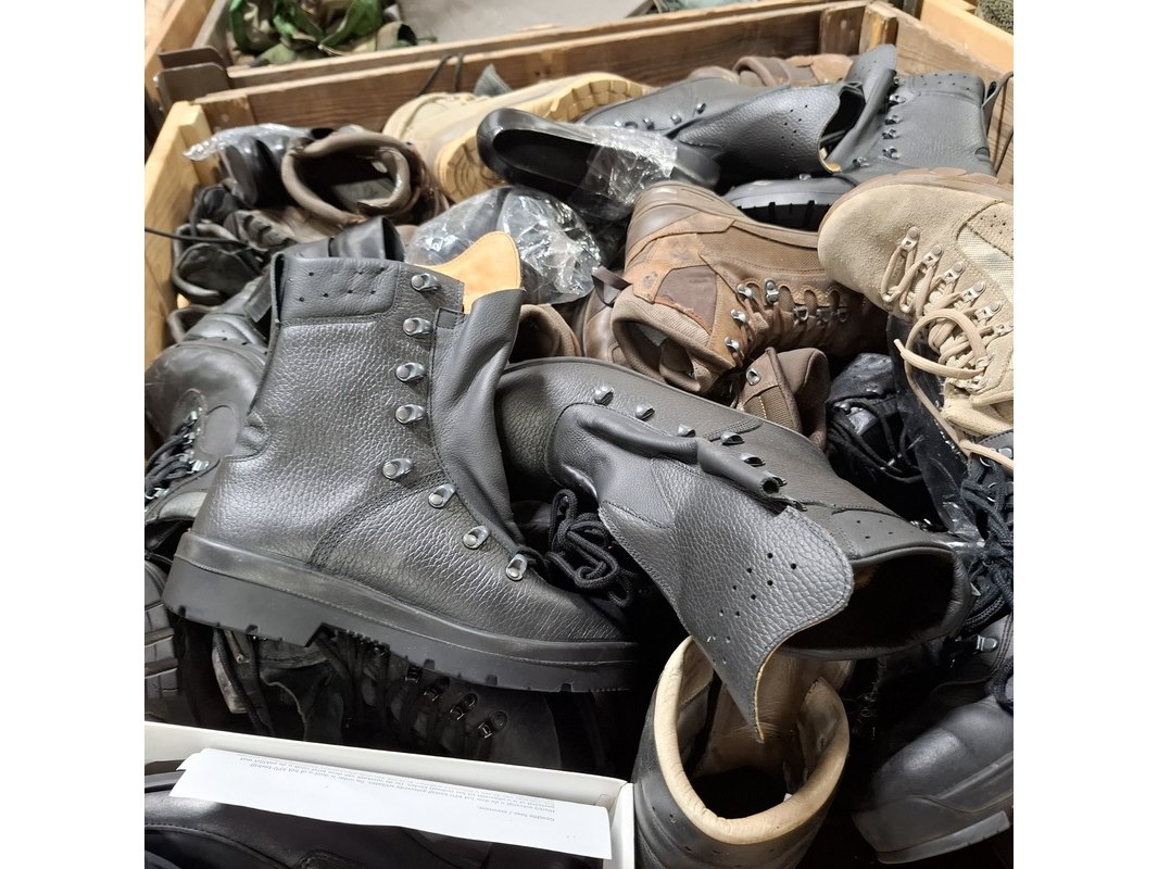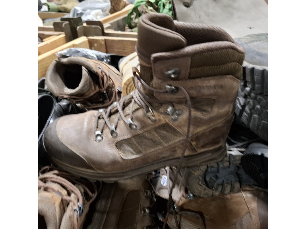 Merk: Meindl /lowa /defensie/Haix Product: Partij diverse schoenen Defensie BouwJaar: van alles Conditie: Gebruikt Specificaties: Diverse merken, soorten en maten Inclusief palletbox