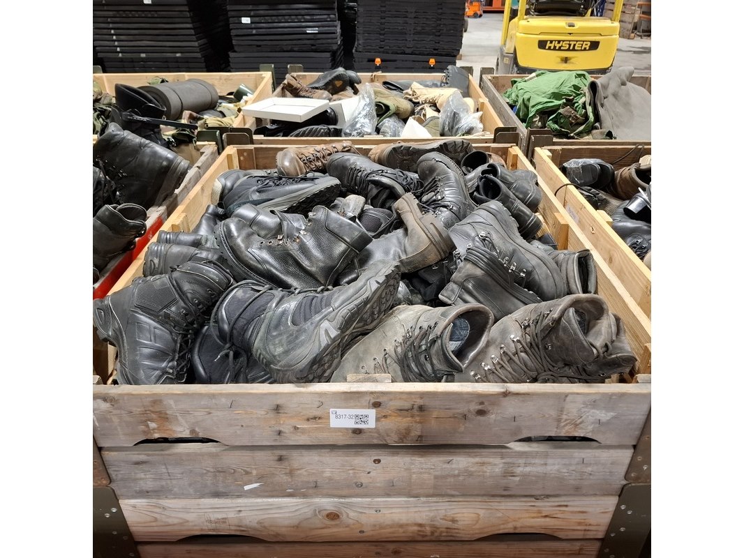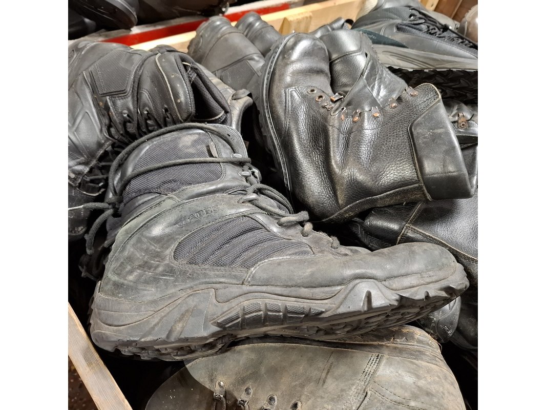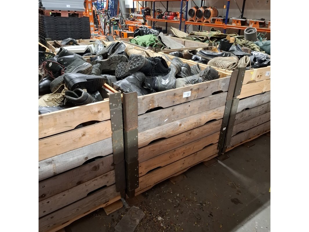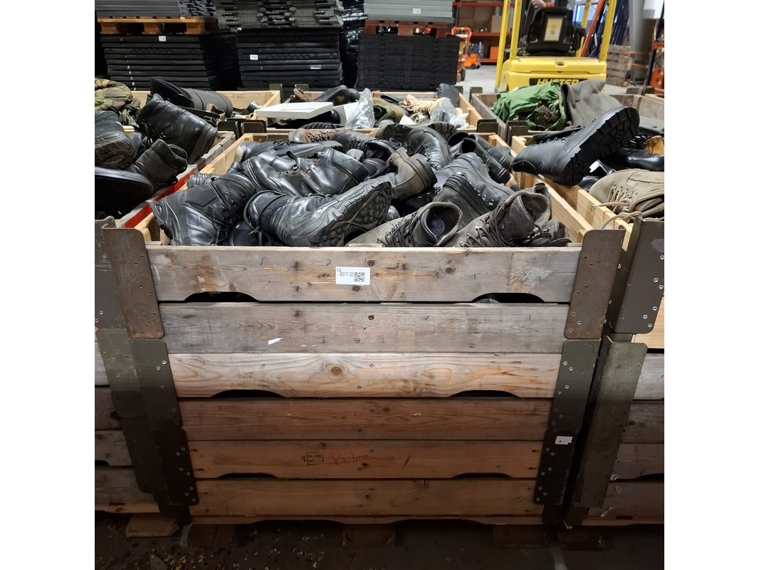 Merk: Meindl /lowa /defensie/Haix Product: Partij diverse schoenen Defensie Materiaal: Van alles Conditie: Gebruikt Specificaties: Diverse merken soorten en maten Inclusief palletbox