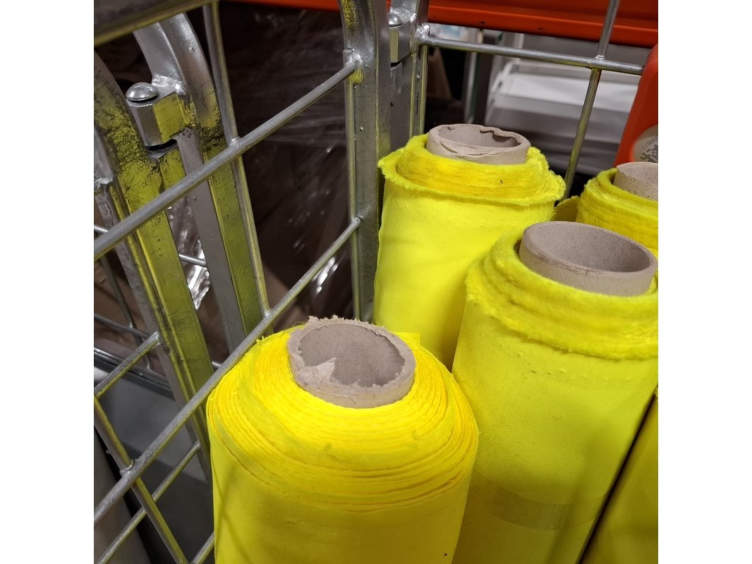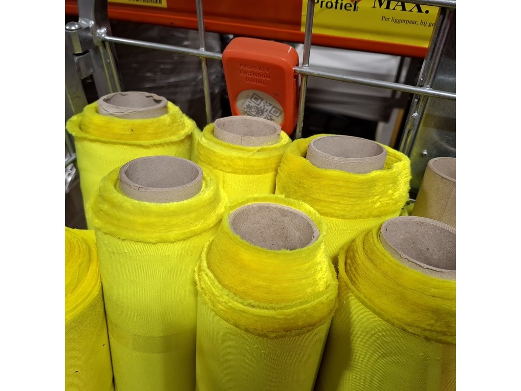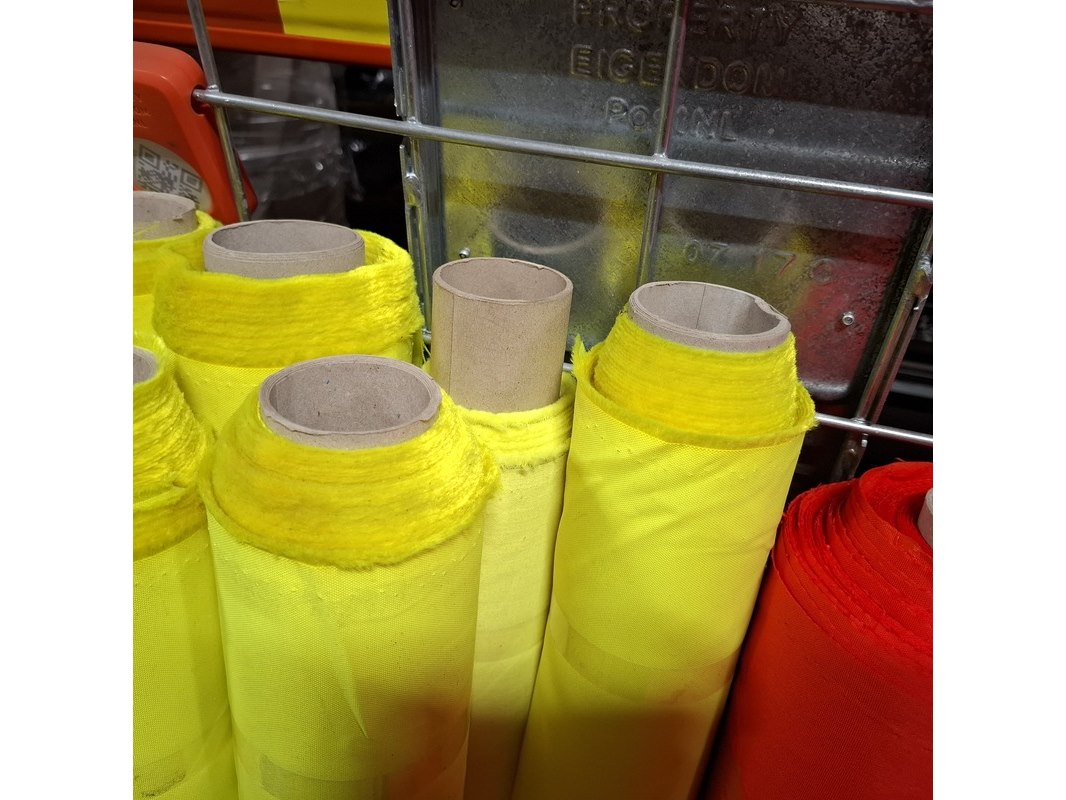 Product: High visibility-stof Afmeting: Breedte ca. 150cm Specificaties: Oranje/rood (4x rol) Geel (9x rol) Totale hoeveelheid ca. 180 meter