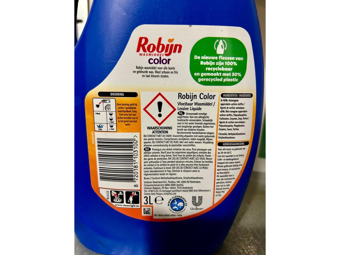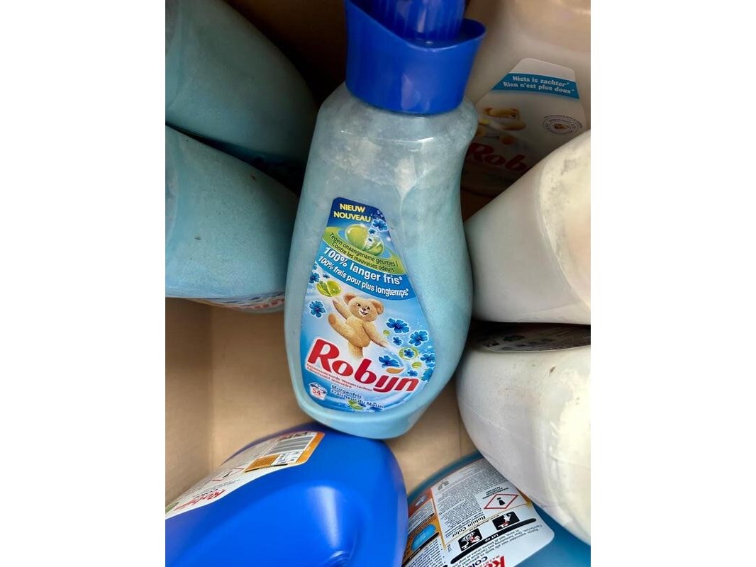 Merk: Robijn Product: 18x wasmiddel color 3 ltr en 6x wasverzachter 0,75 ltr Conditie: Nieuw Specificaties: 18 x 3 ltr vloeibaar wasmiddel Robijn Color 6 x 075 ltr wasverzachter Robijn