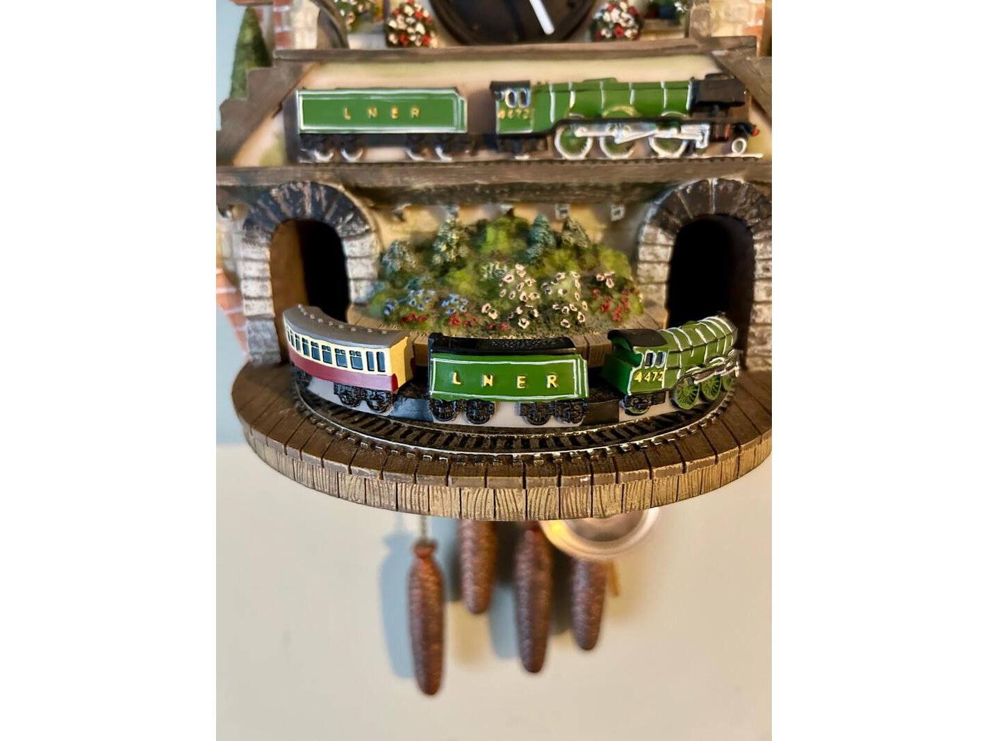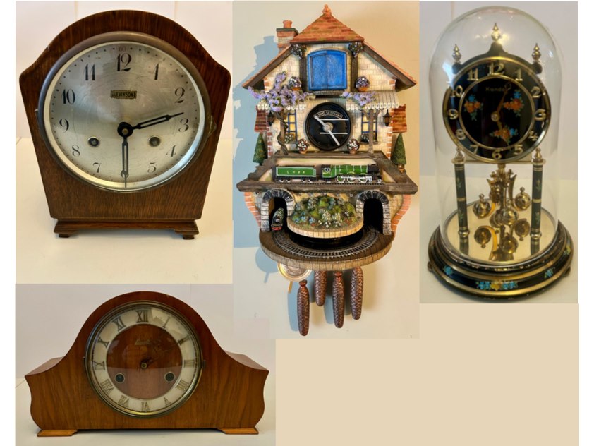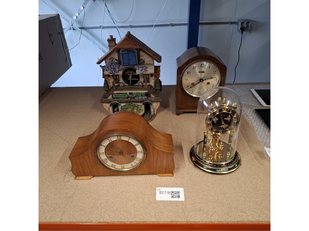 Product: 2 penduleklokken, tafelklok en treinklok Conditie: Gebruikt Specificaties: 2 penduleklokken (met slag), 1 treinklok, 1 stolpklok Penduleklok 1 Merk: Lancaster ca 27 x 16 cm. Loopt en slaat Penduleklok 2 Merk: Levinson ca 18 x 27 cm. Loopt en slaat Treinklok 'Flying Scotsman' ca 25 x 31 cm (zonder gewichten gemeten) Loopt alleen Stolpklok Merk: Kundo ca 14 x 23 (incl. stolp gemeten) Loopt. Verdere werking onbekend