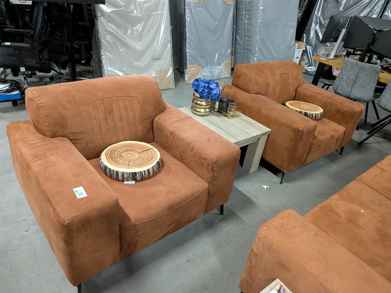 Merk: Seat&Sofa's Product: Bankstel met 2 salontafels Kleur: rust Materiaal: Zaria BouwJaar: september 2023 Conditie: Gebruikt Specificaties: 2x 1-zits en 1x 3-zits