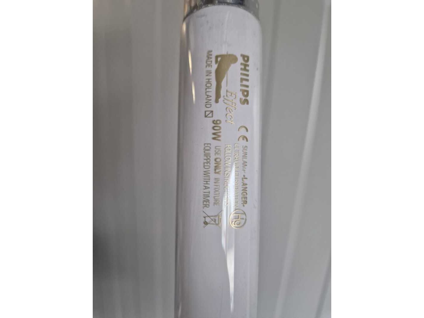 Merk: Philips Product: Zonnebank lampen Kleur: Wit Conditie: Nieuw Specificaties: 49 stuks nieuwe zonnebank lampen Philips effectief Cleo 90 Watt lamp lengte 176 cm Omschrijving : Cleo zonnebanklampen kenmerken zich door een hoge efficiëntie en de sterkte van de lamp blijft van kracht gedurende bijna de gehele levensduur van de lamp. De lampen geven een uitstekend bruiningseffect én zijn erg betrouwbaar. De Cleo Performance lampen hebben een standaard bruiningspercentage, waardoor de lamp uitermate geschikt is voor mensen die graag genieten van een uitgebreide bruiningssessie. Ook voor mensen met een gevoelige huid is dit de meest geschikte lamp en is het resultaat een langdurige kleur. Eigenschappen Philips Cleo effectief 90W: 90 Watt 176 cm lang standaard bruiningspercentage