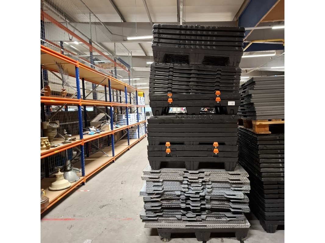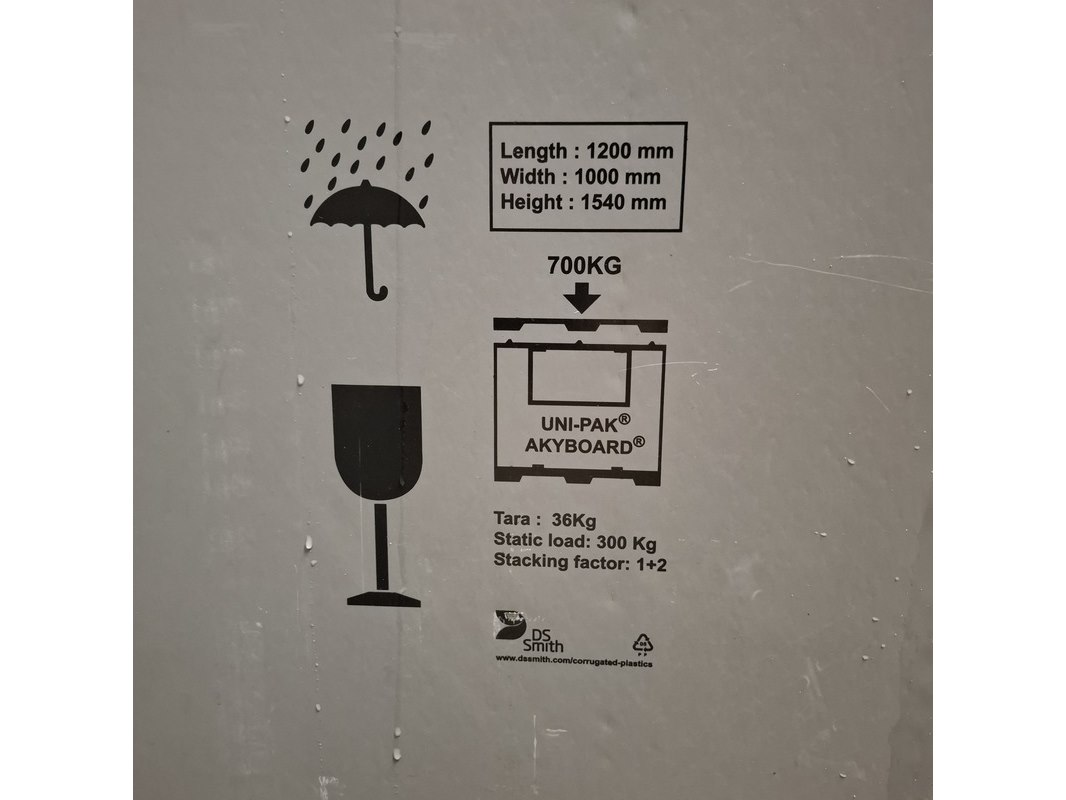 Product: Uni pack Materiaal: Kunstof Afmeting: Lxbxh: 1200x1000x933mm Conditie: Gebruikt Specificaties: Set van 10 uni packs compleet 120 bij 100 incl deksel en onderkant