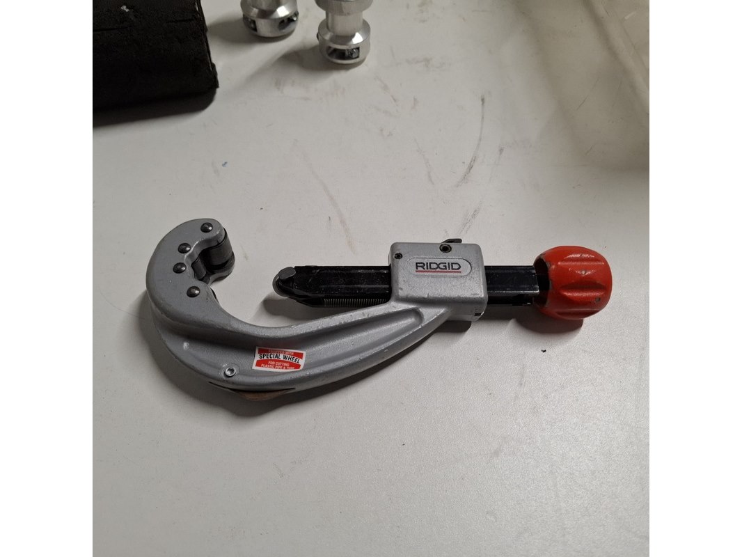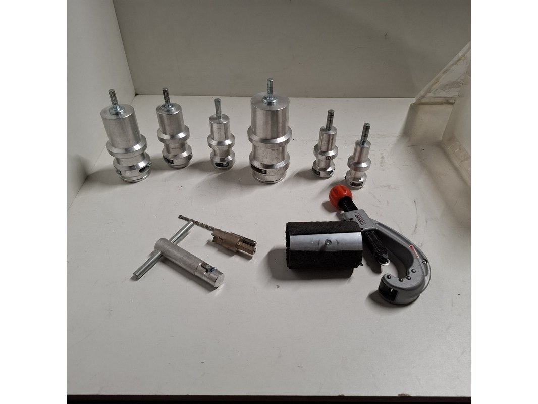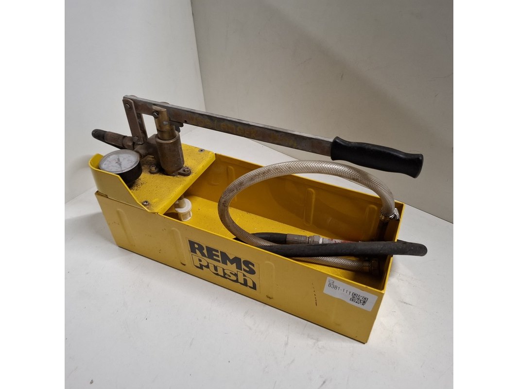 Merk: O.a. Rems, Rothenberger Product: gereedschap Conditie: Gebruikt Specificaties: Bestaande uit handafperspomp Rems, testomgeving Rothenberger RP30, 61130, 6x buizen afrader, buizensnijder