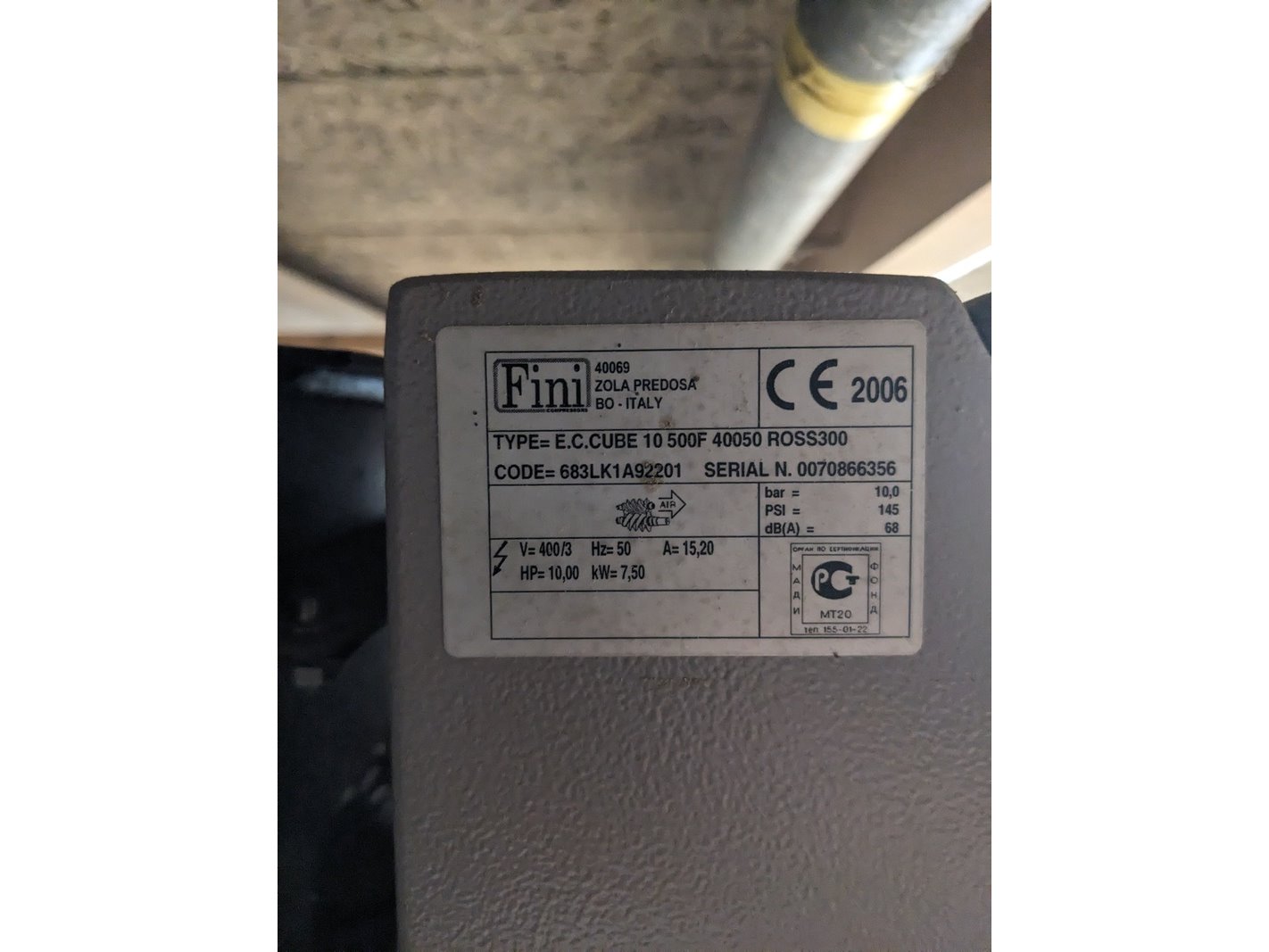 Merk: Fini Product: Compressor Afmeting: 500 liter BouwJaar: 2006 Conditie: Gebruikt Specificaties: 400V, 7,5kW, max 10 bar, exclusief stekker Let op ! Kavel staat op ca. 230cm hoogte