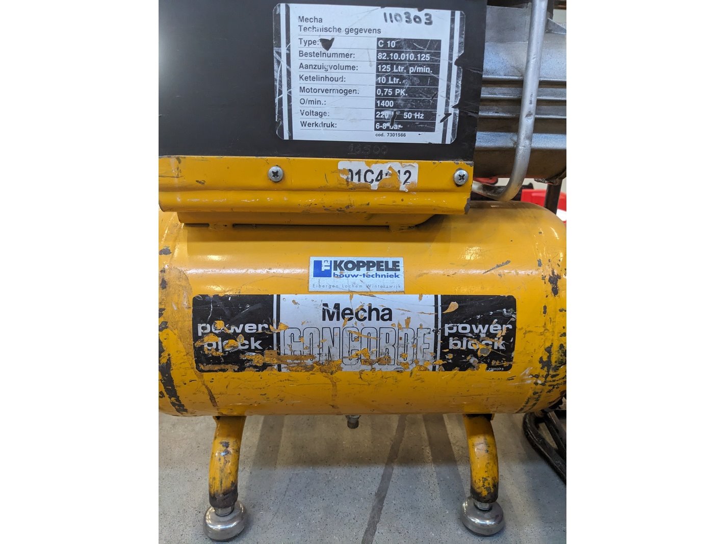 Merk: Mecha Concorde Product: Compressor met luchtslanghaspel Afmeting: 10 liter Specificaties: 230V, max 8 bar