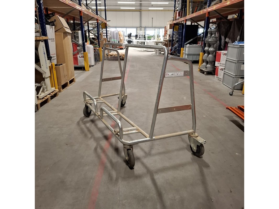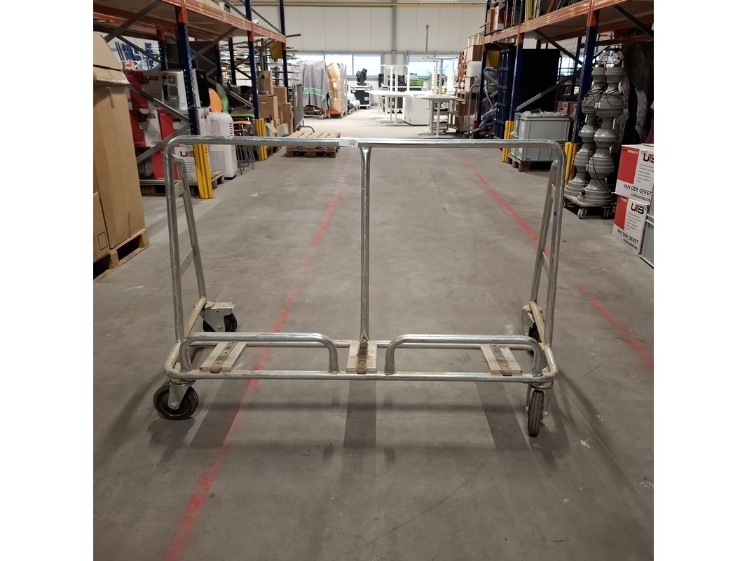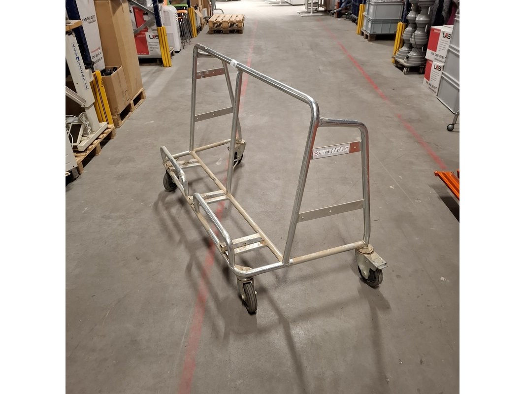 Merk: Wanzl Product: Platenkar Materiaal: verzinkt Afmeting: bxdxh 170x75x95cm Conditie: Gebruikt