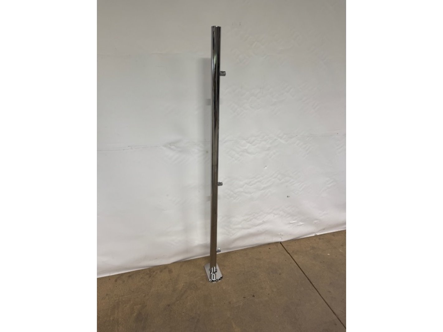 Merk: Wanzl Product: Staander voor toegangspoort Materiaal: staal Afmeting: hoogte ca. 160cm Conditie: nieuw Specificaties: in diverse uitvoeringen, enkelzijdige en dubbelzijdige bevestigingsclips. Diameter 48mm, dikte staal 1,5mm