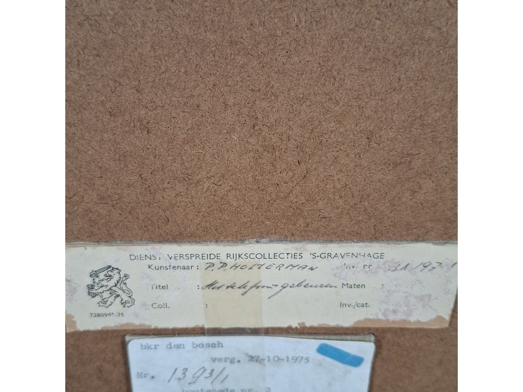 Merk: P. P. Holterman Product: Houtsnede Afmeting: hxb ca. 70x83 cm BouwJaar: 1975