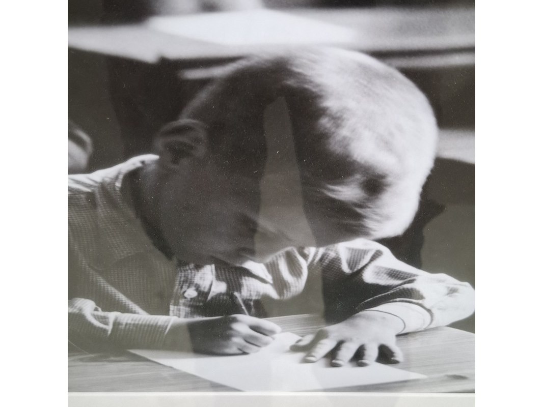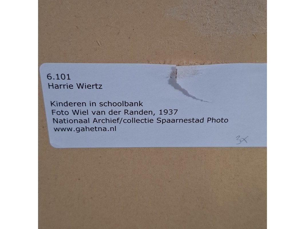 Foto in lijst, wiel van der randen, kinderen in schoolbank, 1937