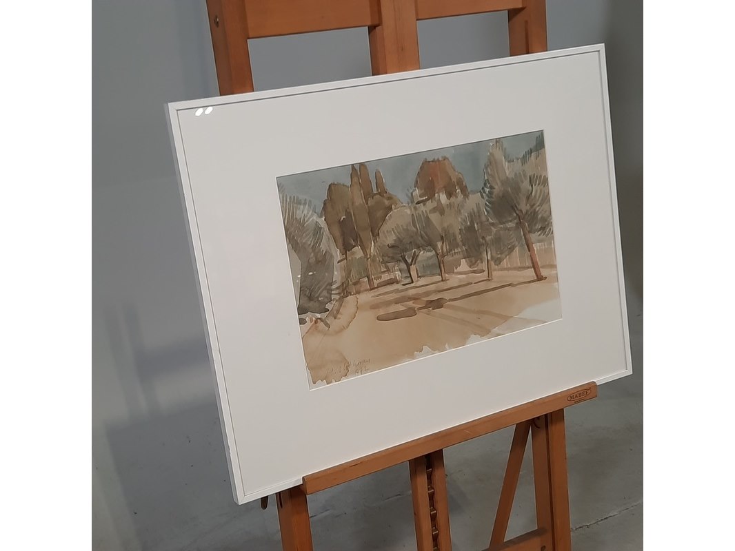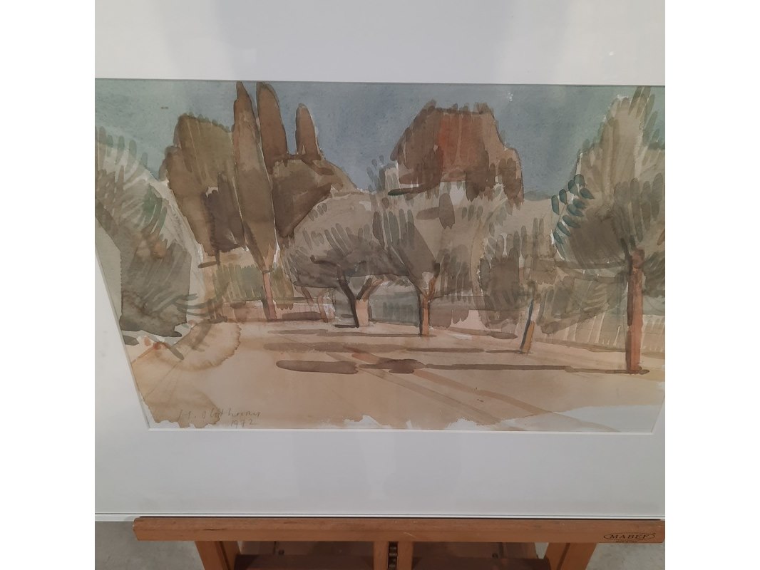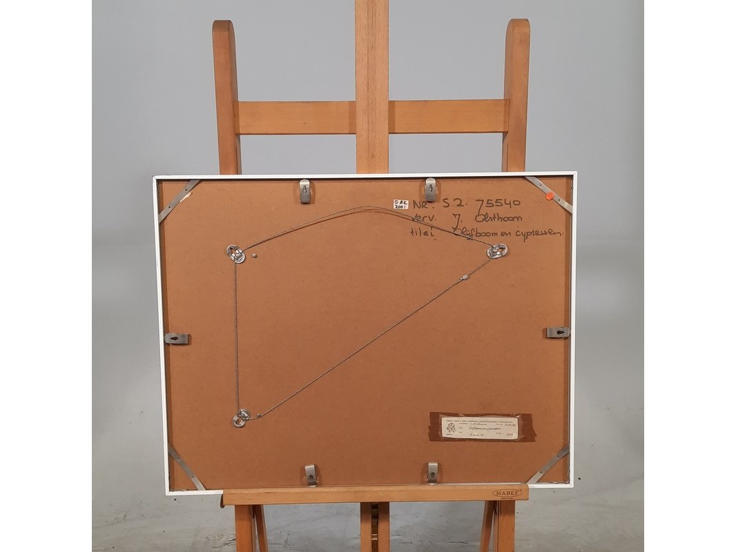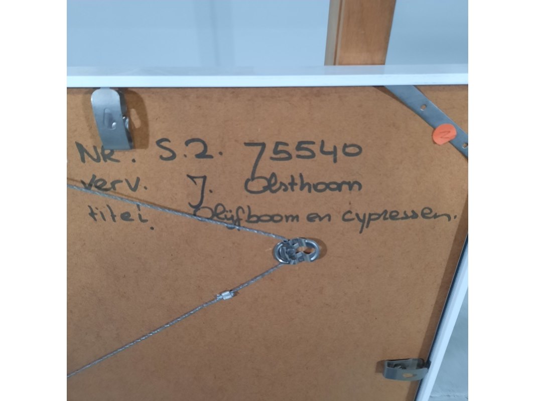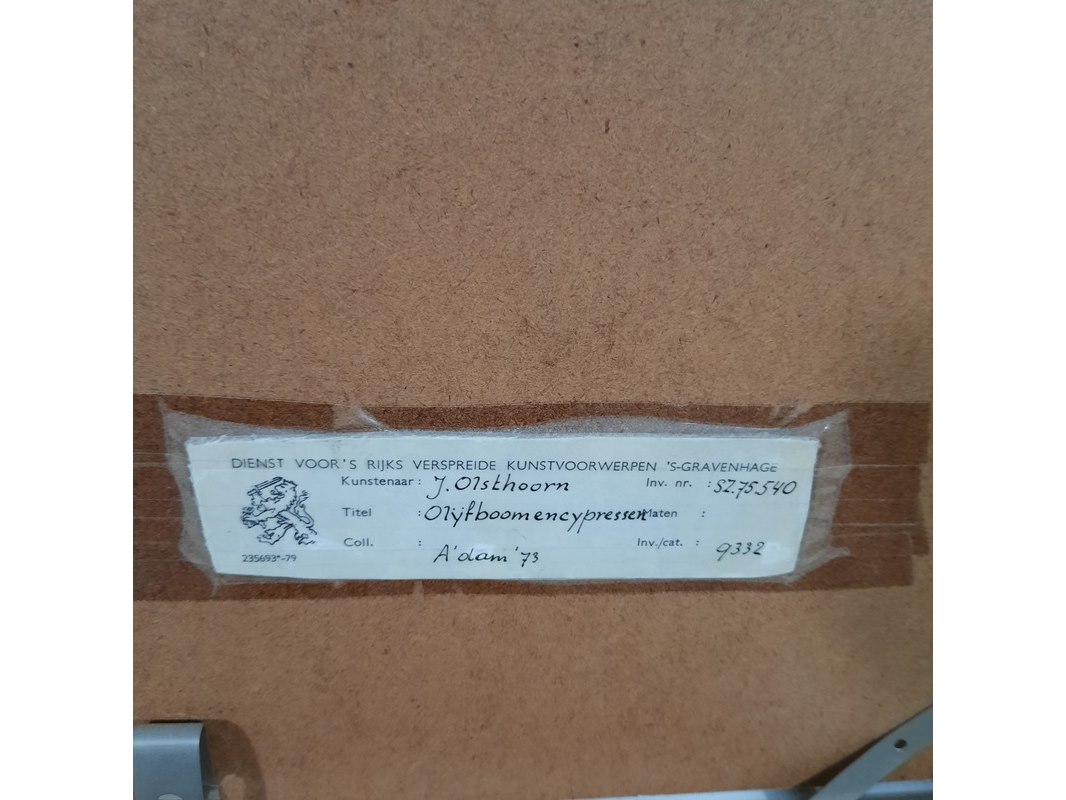 Afbeelding in lijst, j. olsthoorn, olijfboom en cypressen, 1972