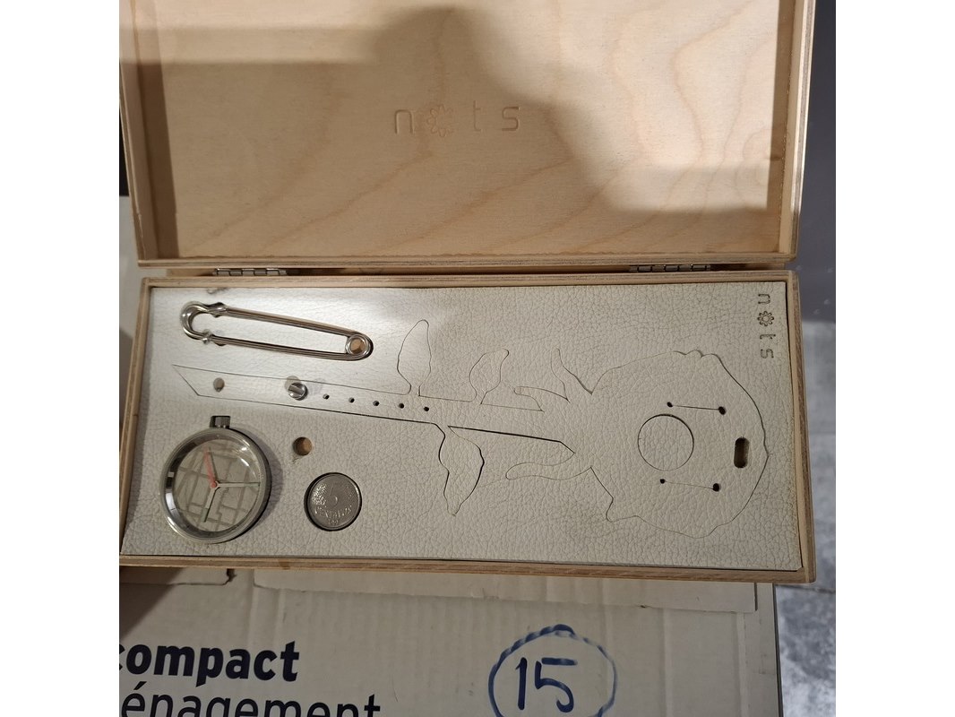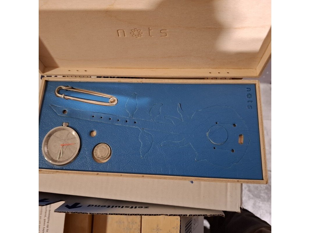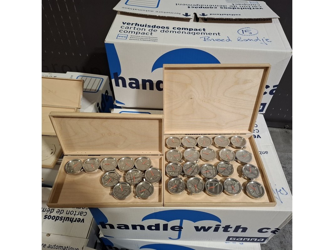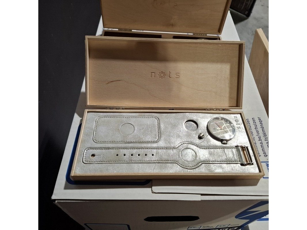 Merk: NOTS / Mondaine Product: Horloges Kleur: diverse kleuren Materiaal: Leren bandjes in diverse kleuren en modellen Conditie: Nieuw Specificaties: Stichting NOTS Foundation (een ANBI) heeft de horloges laten ontwerpen en produceren om geld op te halen voor haar microkrediet en solar lampen activiteiten in Afrika. Bestaande uit: 63x met bredeband 36x met 2 horloges 56x met rotswanden 21x standaard En diverse onderdelen: 3x doos batterijen 15x gebruiksaanwijzing ( in zilveren zakje ) 30x losse horloges voor als er 1 niet goed is. Partij munten