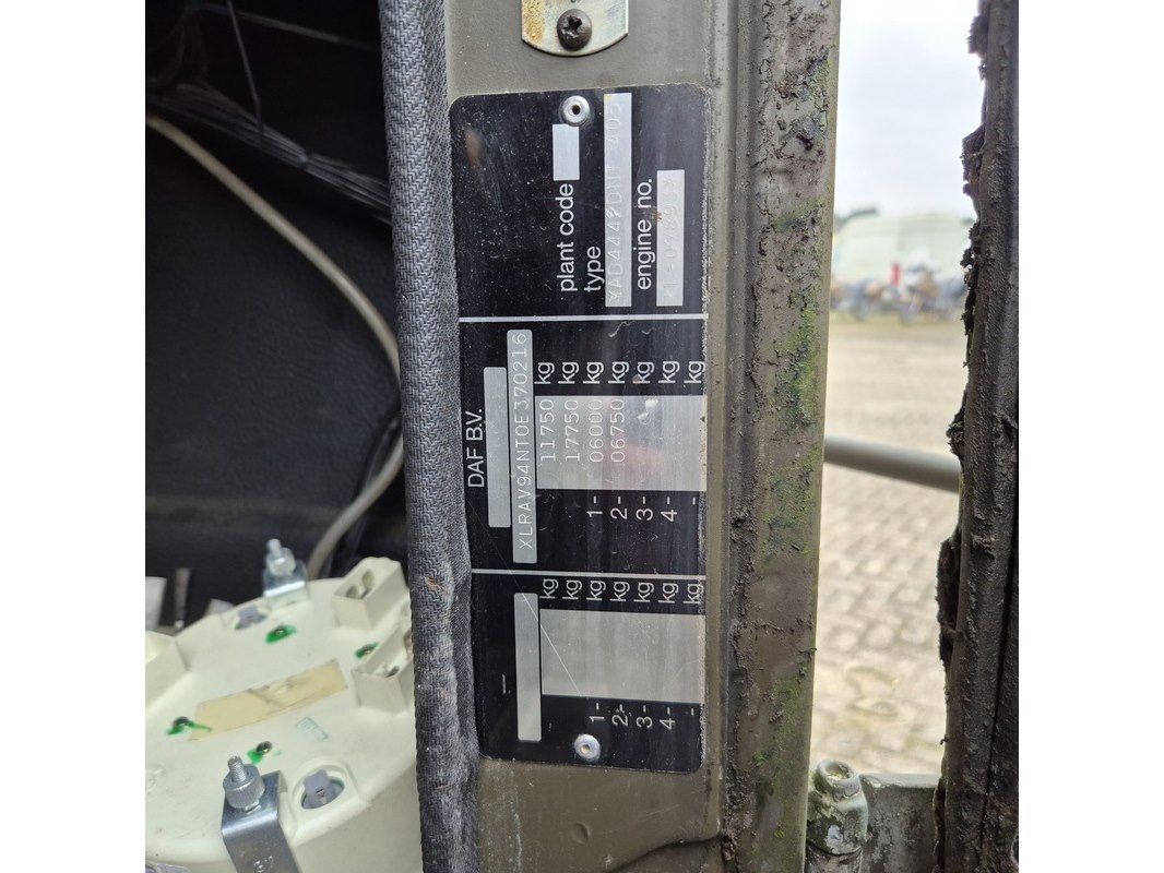 Merk: Daf Product: Vrachtwagen BouwJaar: 1991 Conditie: gebruikt Specificaties: Kenteken: Niet geregistreerd Eerste toelating nationaal: Niet geregistreerd APK vervaldatum: Onbekend Brandstof: Diesel Afgelezen tellerstand: Onbekend Transmissie: Handgeschakeld Aantal sleutels: 0 VIN nummer: XLRAV94NT0E370216 Start: Onbekend Waargenomen gebreken Diverse schades, gebreken en verwijdering van onderdelen. Werking onbekend Divers losliggend elektronica Voorruit stuk